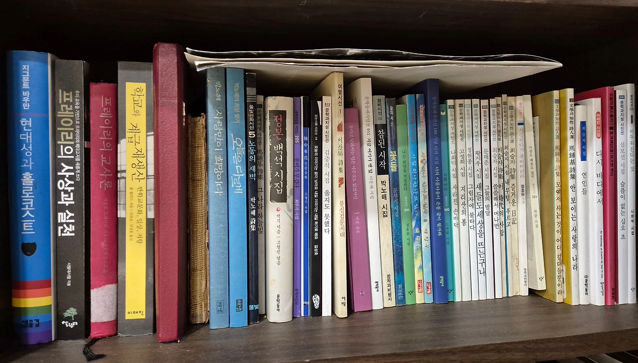 2023년 10월에 이사했으니 이제 거의 2년이 채워졌다. 이사를 핑계로 아이들 동화책이랑 내 역사책들을 몇백권 버리고, 앞으로 읽을 책이랑 평생 가지고 있으며 지침으로(표지만으로도 지침이 되은) 책만 남겼다. 책장도 몽창 버리고, 거실에 두었던 책장들은 남편방과 내 방(20년만에 다시 가진 내 방!)에 나누어 넣었다. 드디어 거실이 깔끔해졌다. 책장이 가렸던 벽이 드러나자 드디어 그림 걸 공간이 생겨났다. 내게 할당된 책장은 딱 4개. 종량제처럼 책장 공간을 넘지 않도록 책 관리를 하기로 해서, 읽고 나서 니눔으로 내놓은 책도 많았는데 어쩐 일인지 넘치기 시작했다.