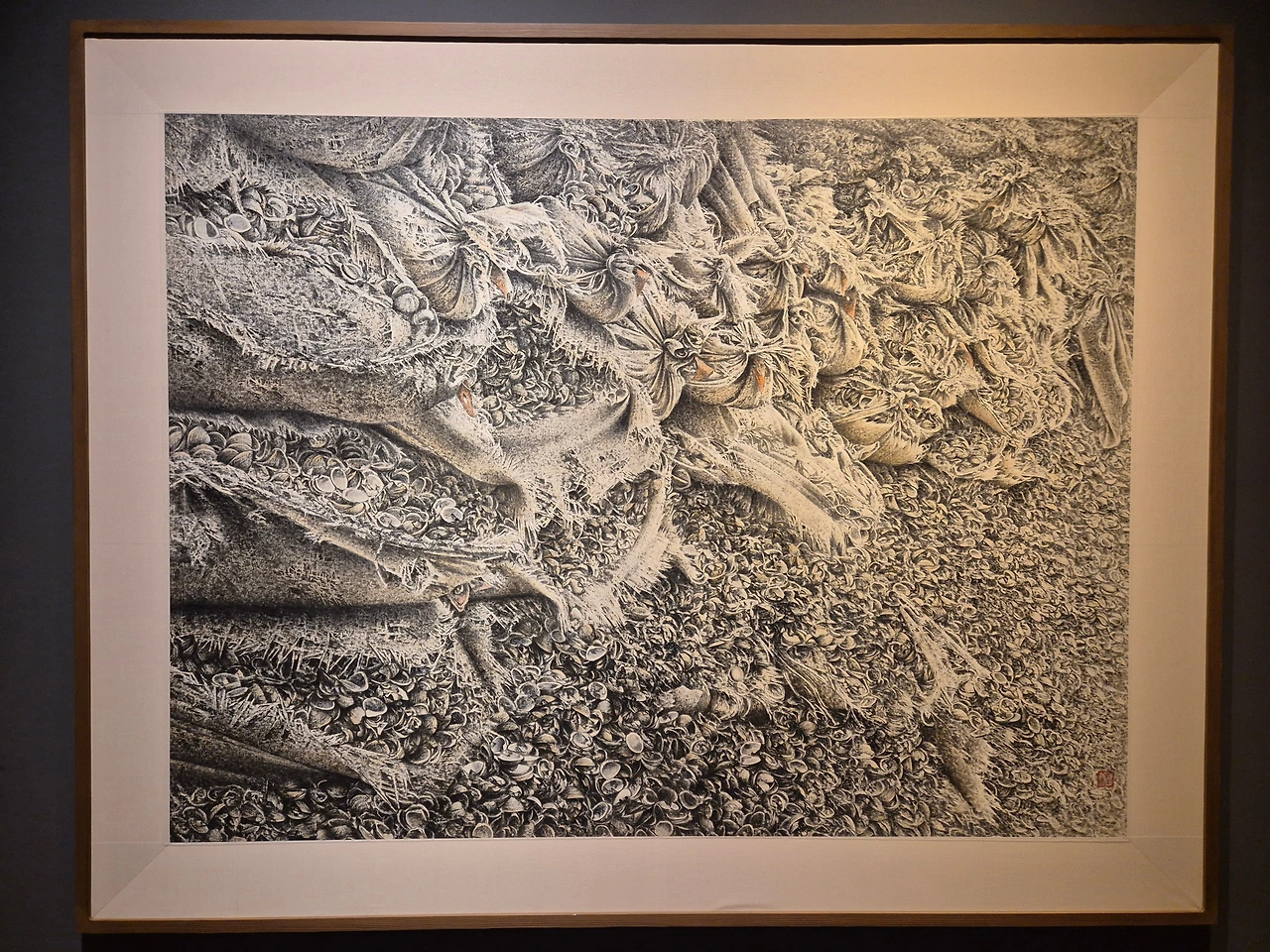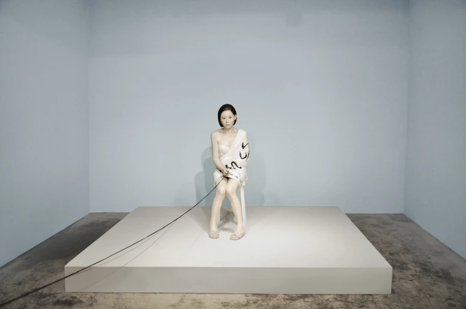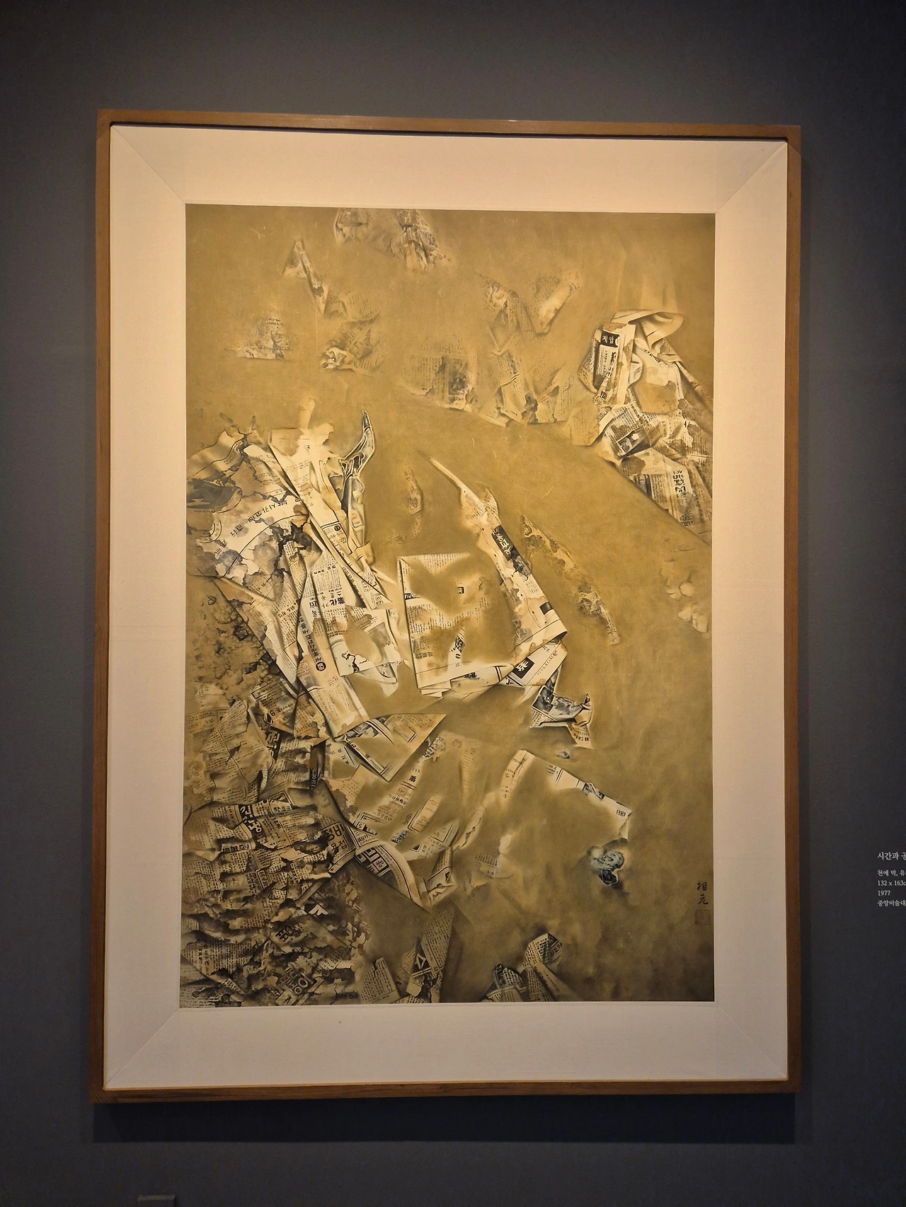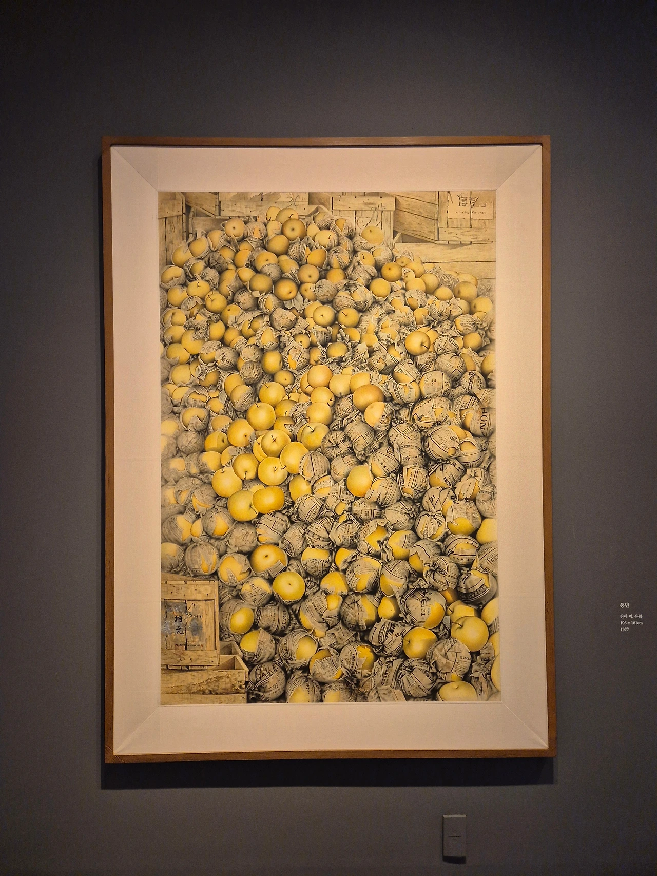 의외로 이상원 화백의 그림은 전시된 것이 별로 없었고, 대부분의 전시관은 개인전을 열고 있었다. 커다란 캔버스에 줄을 그은 단순한 추상들로 이루어진 작품들이었는데... 솔직히 뭐지? 하고 있었다. 하지만 작품 설명을 읽어보고 작가에 관해 찾아본 후 조금 더 이해가 갔다. 작가 천성명. 2015년까지 섬뜩할만큼 문제적 작품들을 줄곧 전시했던 분이었다. 예리한 문제의식으로 사회비판을 가차없이 가했던 작품들로 기대를 한몸에 받던 작가였던 듯한데.