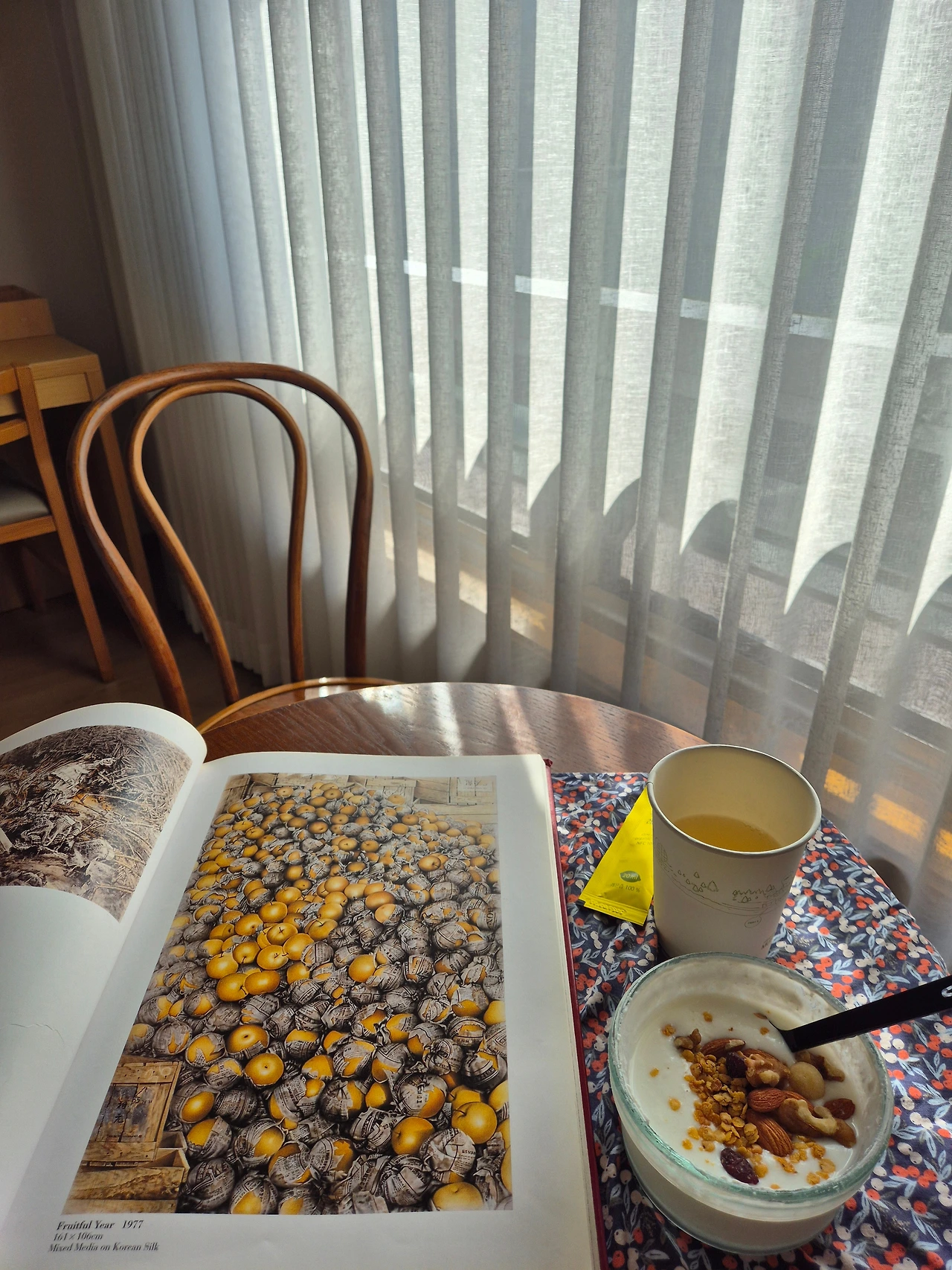 아침에 일어나 반려요거트로 아침을 먹고 다시 미술관으로 갔다. 관리하시는 분이 1층 카페의 창을 활짝 젖혀주었는데, 천국같은 바람이 불어와 떠날 수가 없었다. 2시간 동안 그 바람을 충분히 즐겼다. 어디선가 날아 들어온 메뚜기의 날개 빛이 아주 고왔다.