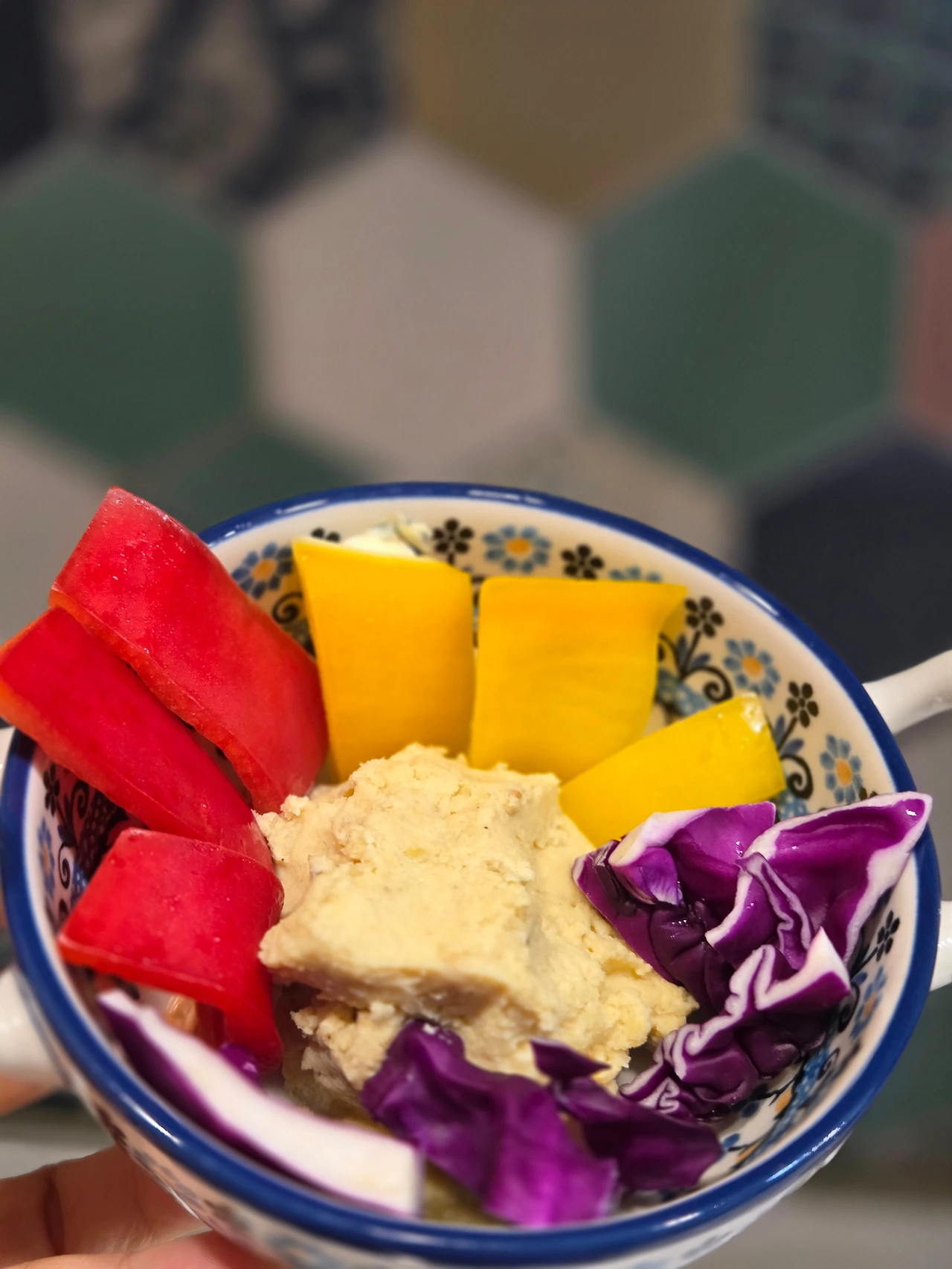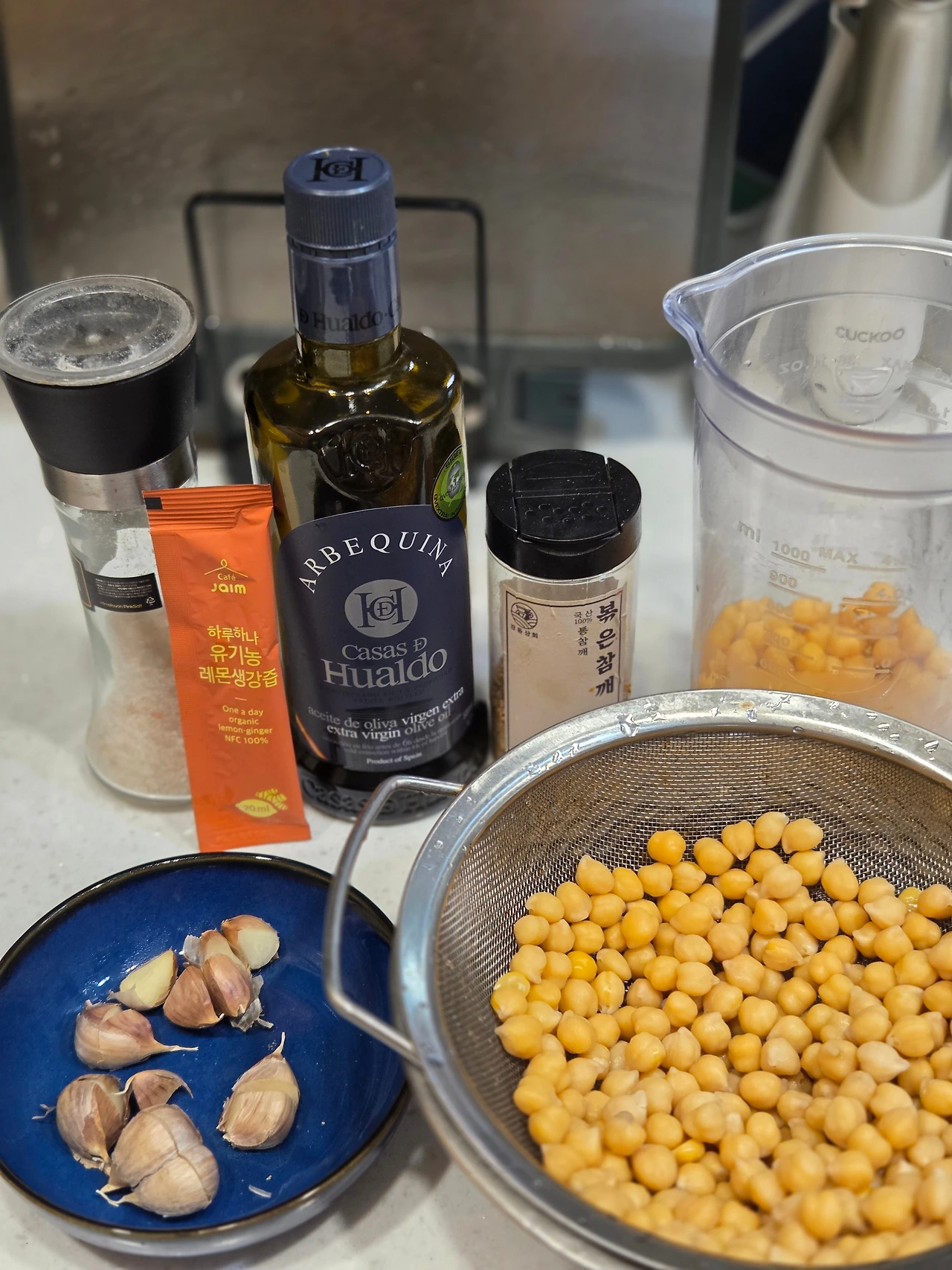 아침에 찐 야채들을 그냥 먹자니 너무 심심해서, 주로 그릭요거트나 바질페스토에 조금씩 찍어먹었다. 그러다 남편이 어디서 후무스를 먹고 와서 이야기를 하길래 호치민에서 맥주 안주로 애용했던 후무스를 만들어보기로 했다. 병아리콩을 삶고 올리브오일, 참깨, 레몬즙, 마늘, 물을 좀 넣어서 갈았다. 마늘을 반만 넣을걸 하는 후회를 하긴 했지만, 정통 후무스에 비해 오일을 좀 덜 넣어서 부드럽기가 좀 덜하지만, 성공했다. 채소에 찍어 먹으니 식감도 좋고 단백질도 먹을 수 있어서 만족감이 높다.