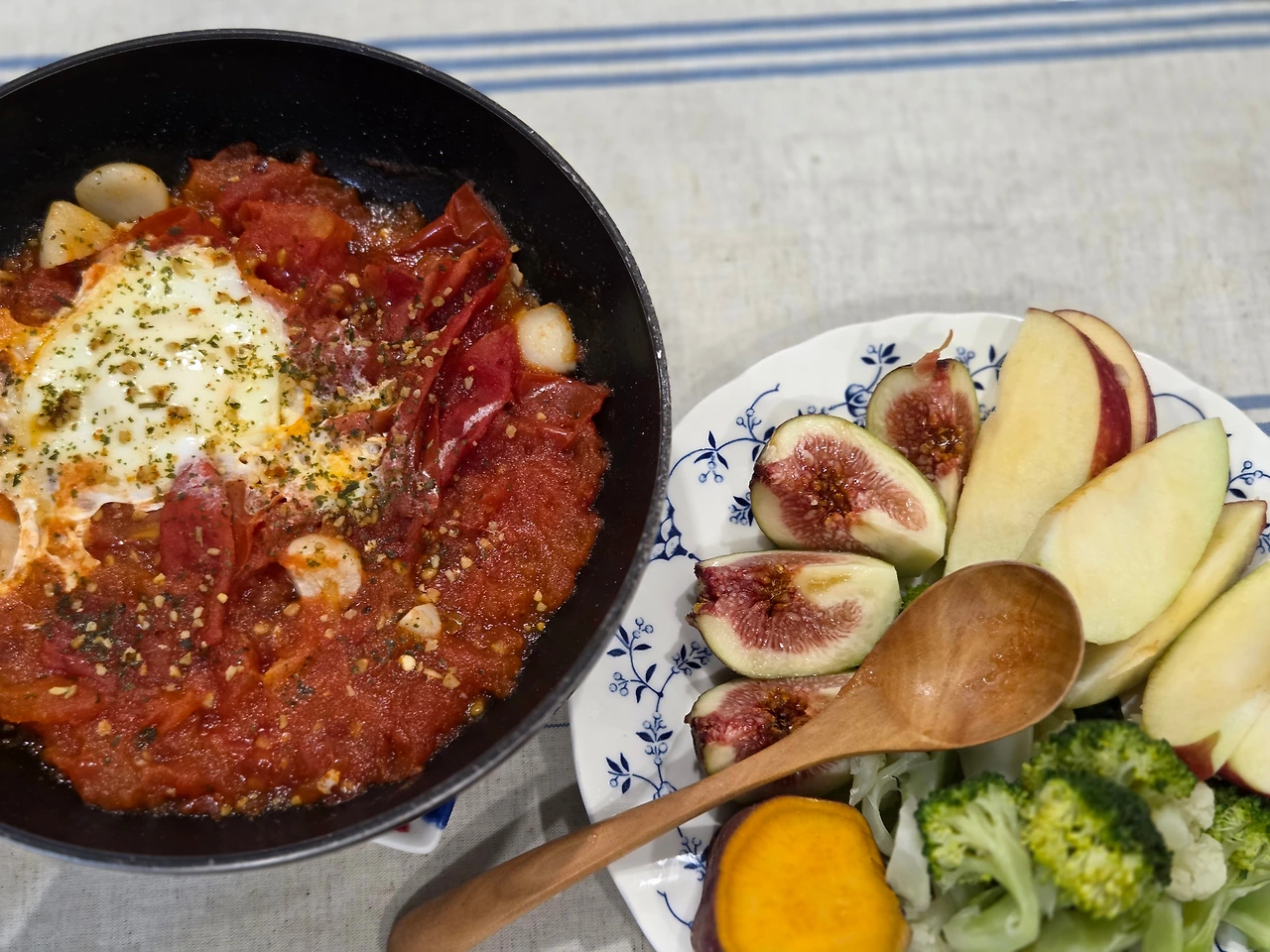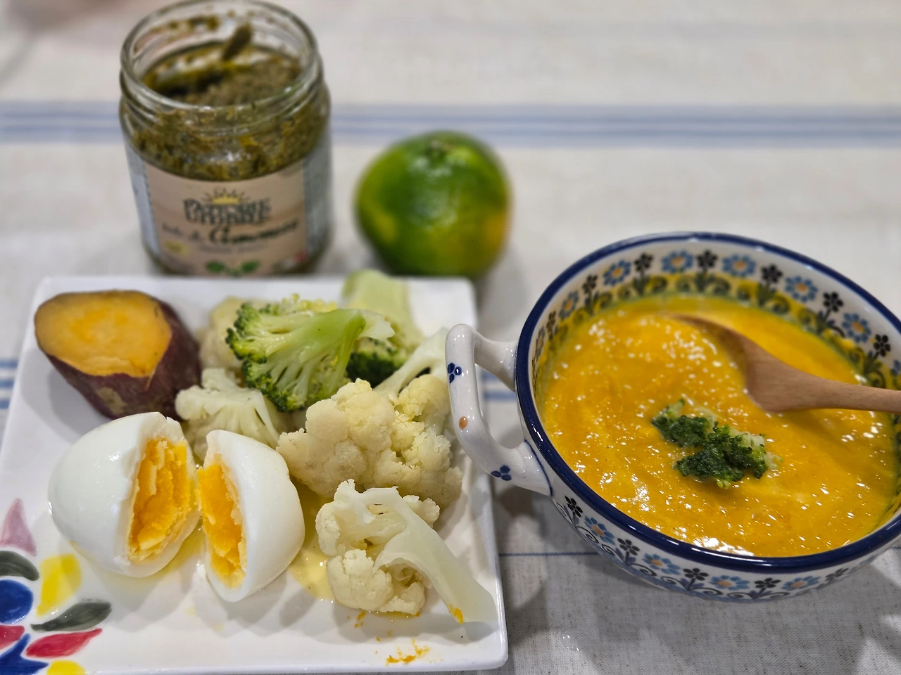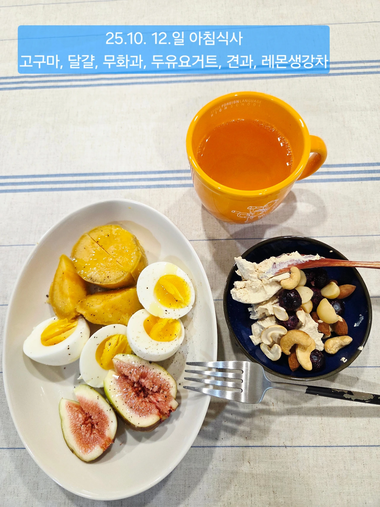사랑하는 토마토와 마늘을 듬뿍 넣은 에그인헬은 빵에 얹어 먹어야 제맛이지만, 빵 대신 채소에 얹어먹는 것에 익숙해지는 중이고, 찐 단호박에 찐 당근조각 몇개, 아몬드 5알, 물 넣고 갈아서 렌지에 3분 돌려 먹는 단호박 스프도 쌀쌀해진 날씨에 안성맞춤이다.