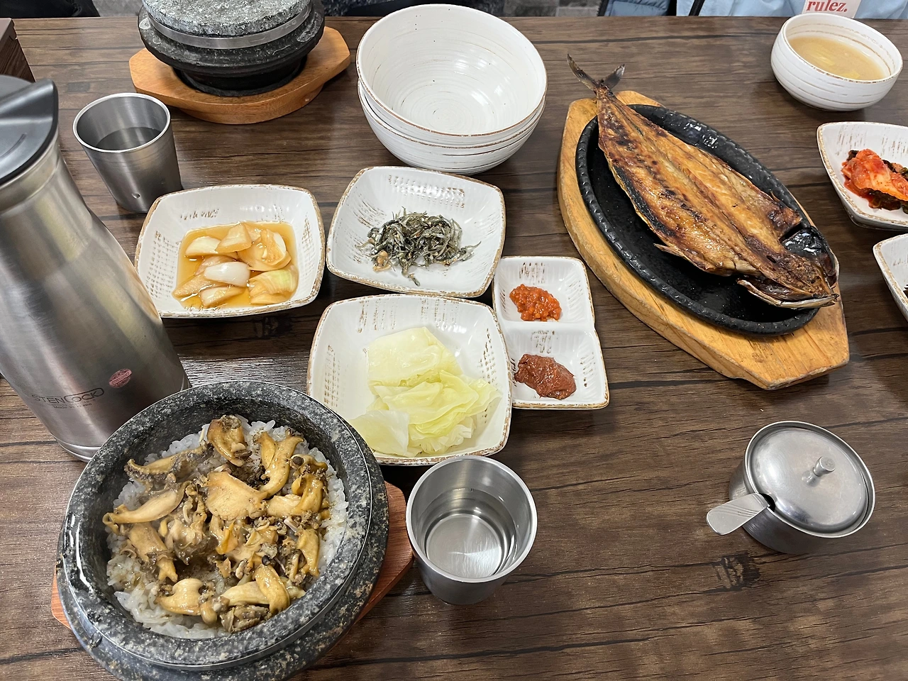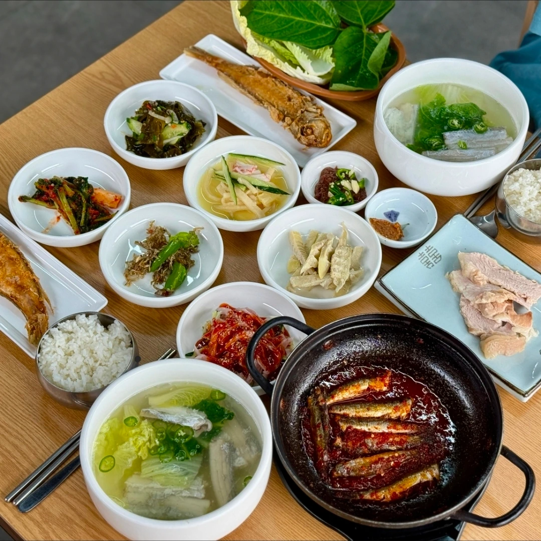 제주 음식으로 정식을 차려내는 어군에서 접시를 싹싹 비웠다. 특히 멜조림을 배추에 얹어 먹는데, 진짜 아주, 최고였다. 먹느라 사진도 안찍어서 네이버에 있는 걸 퍼왔다. 갈치국도 이렇게 맛있을 수가 없었다.