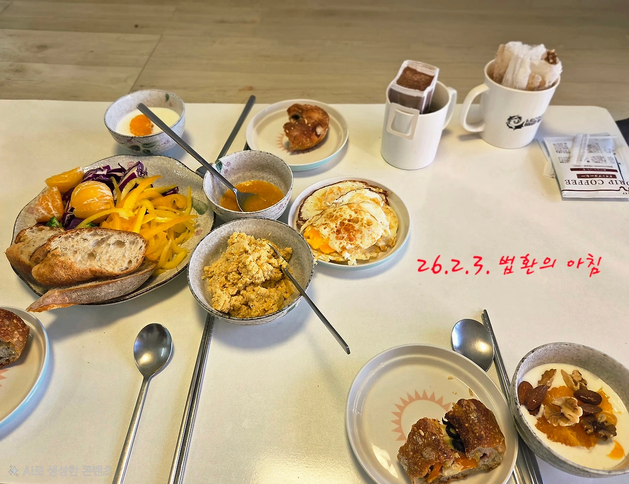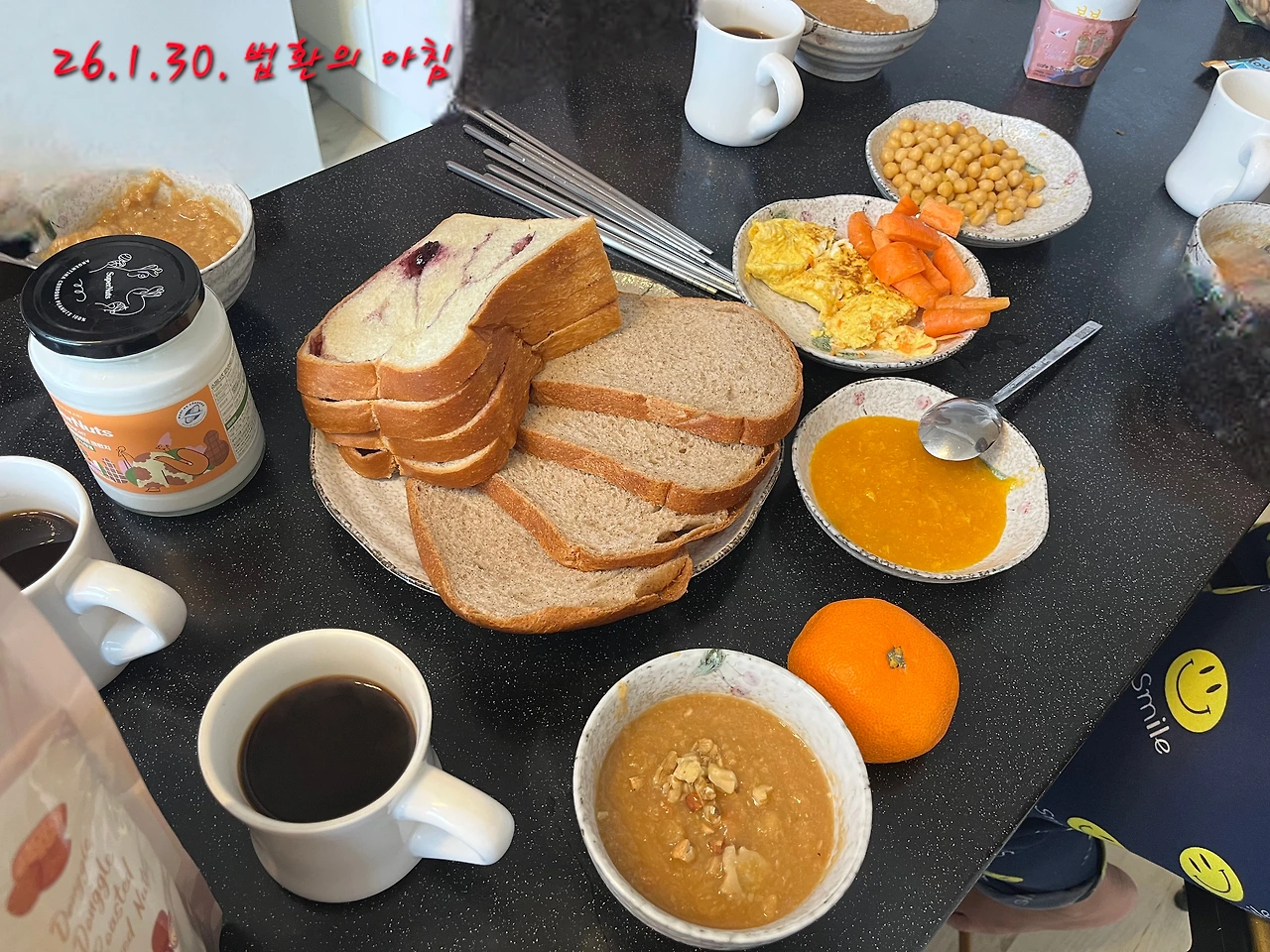 우리 중 가장 운동을 좋아하는 러너 김은 모두가 잠든 새벽에 일어나 빵과 커피를 사러 달려나가 유기농 밀만을 사용하는 미소제빵소에서 부드러운 통밀식빵을 사왔다. 똑똑하게도 커피를 샷으로만 받아 가져왔다. 러너가 달리는 사이 나는 병아리콩을 삶아 채소수프를 끓이고 어제밤 편의점에서 산 달걀로 간단한 달걀말이를 만들었다. 이번에는 김이 데려온 반려요거트가 모든 식탁에 함께 했다.