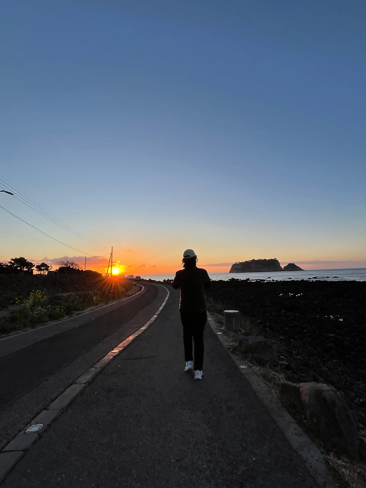 김과 함께 마지막 법환 러닝. 해가 돋는 바다와 맑은 범섬을 보며 즐겁게 달렸다.