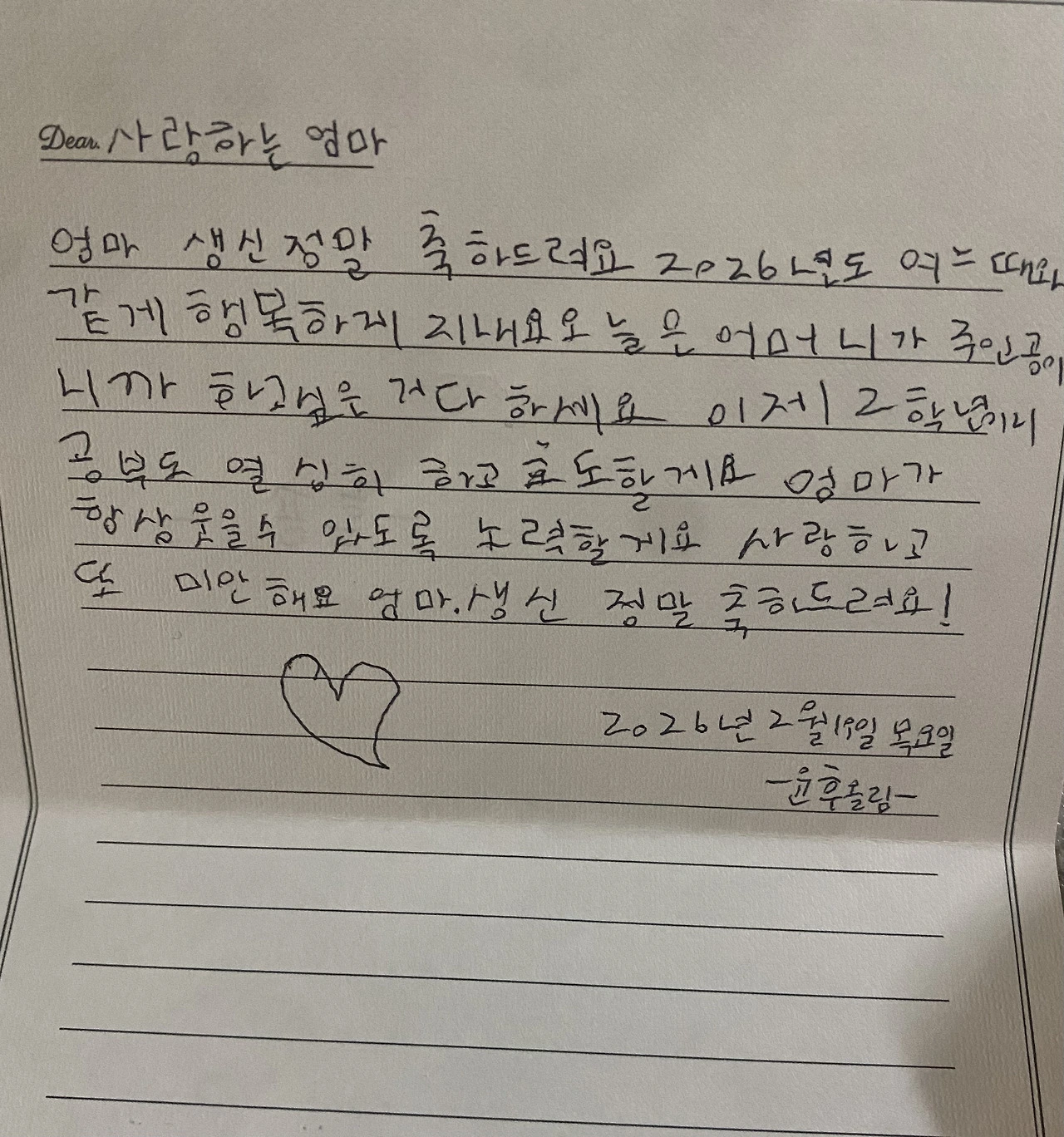큰아이에게 생일 선물로 받은 손편지