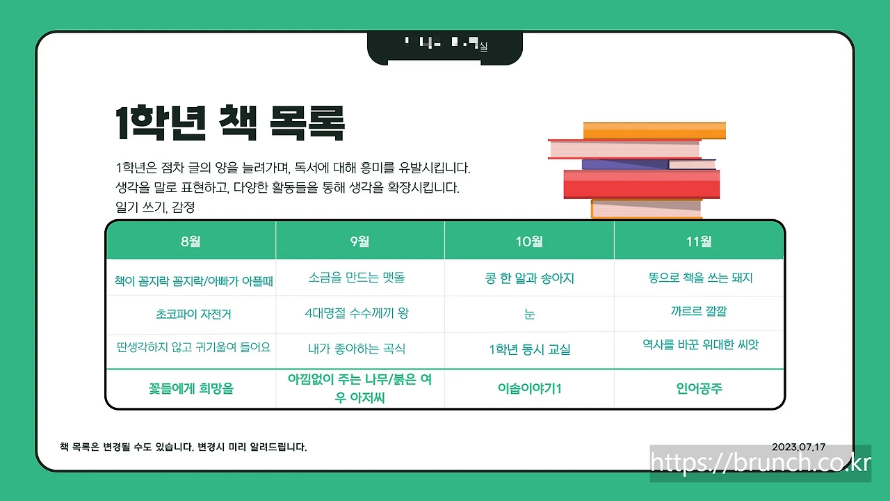 초등 저학년을 대상으로 하는 독서교실인데, 우리 집에 있는 두 녀석이 1학년, 3학년으로 최고의 환경이었다.