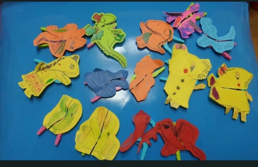 색색의 도화지 위에 각자 떠올린 악어를 그리고,
