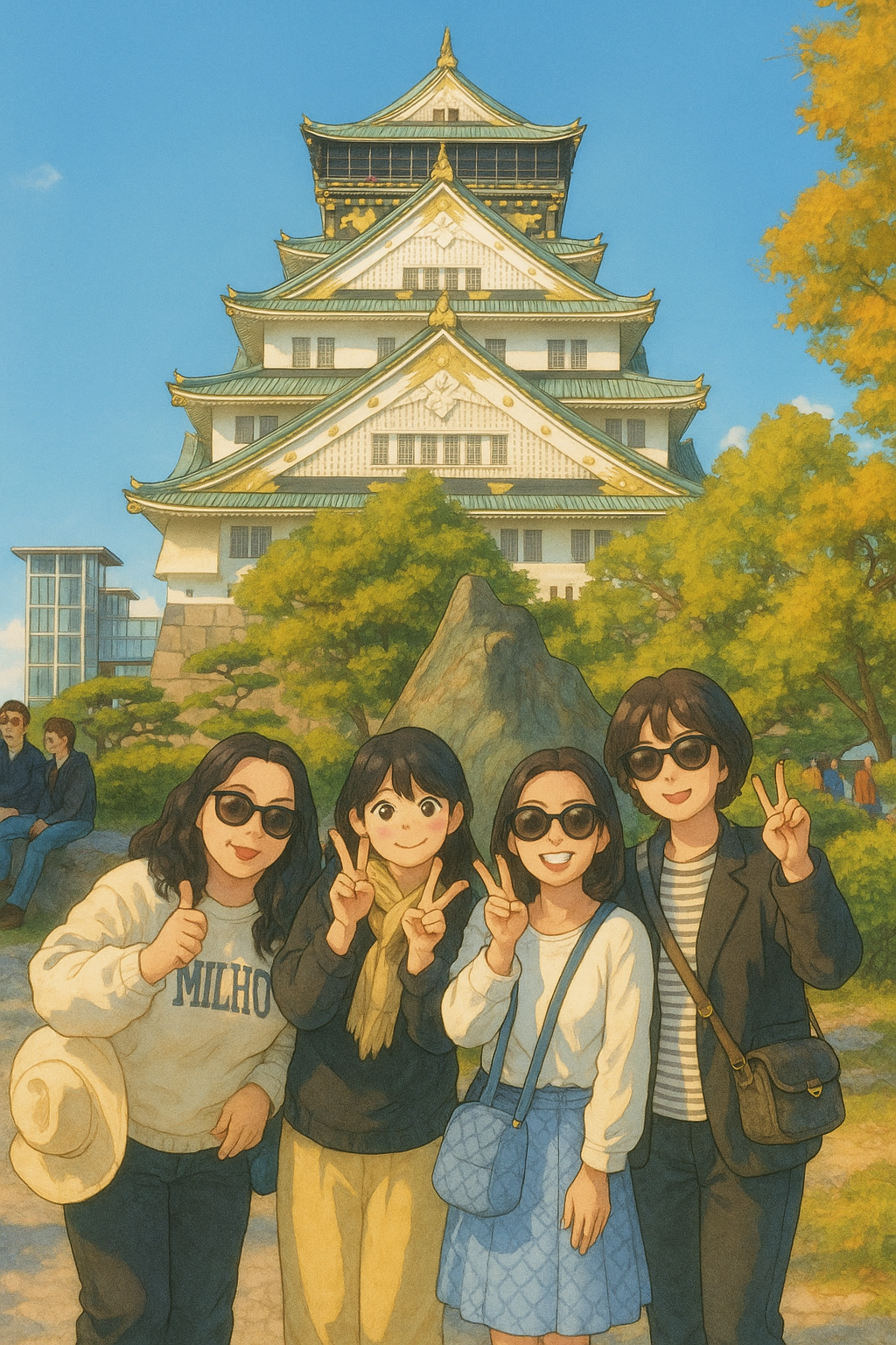 오사카성의 바람을 맞으며 우리만의 제스처 사진도 잔뜩 남겼다.