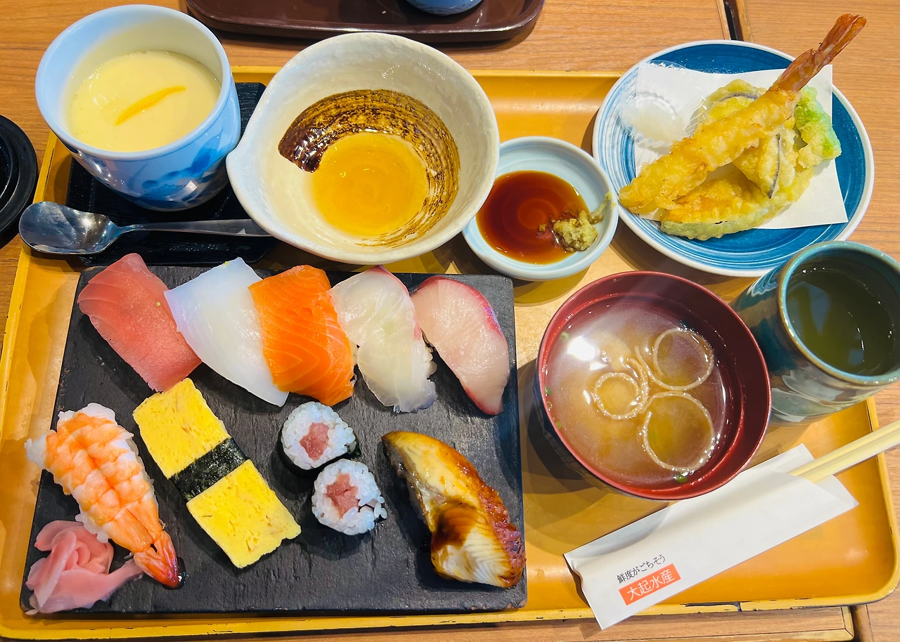 오사카에 도착해 첫 식사는 일본 감성 가득한 초밥 정식이었다.