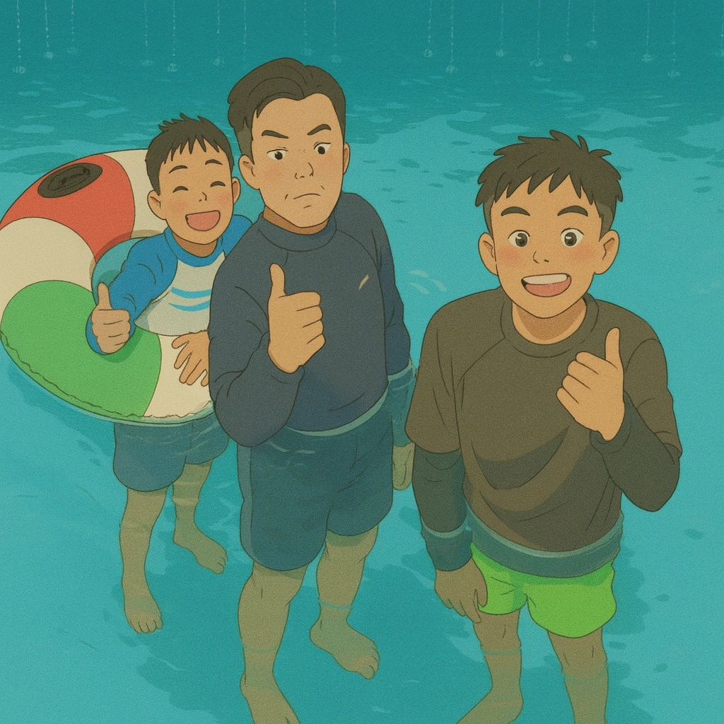 수영장에서 아이들의 웃음소리가 울려 퍼지고,