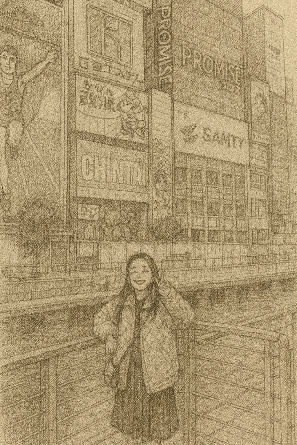 도톤보리의 화려한 간판 앞에 서니, 오래전 만화 속 장면에 들어온 듯했다. 반짝이는 불빛과 활기찬 사람들의 웃음소리가 섞여 일본의 첫인상을 강하게 남겼다. 오사카성 앞에 서니 붉고 노랗게 물든 단풍잎이 바람에 흔들렸고, 그 속에서 남편과 나란히 찍은 사진은 그 자체로 가을의 선물이 되었다.