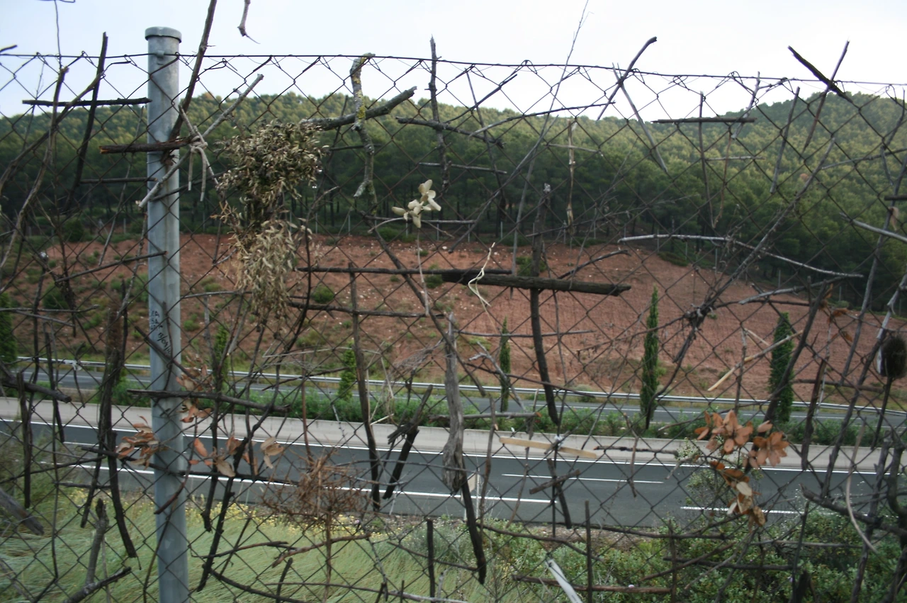 나뭇가지를 하나 하나 엮었나 싶었던 철조망이 가까이서 보니 십자가 모양의 나뭇가지가 수십개가 매달려 있었다.