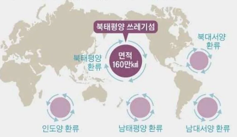 북태평양 쓰레기섬에 있는 쓰레기를 수거하고 있는 오션클린업의 설립자 겸 CEO 보얀 슬랫에 따르면 쓰레기섬의 쓰레기의 출처 상위 5개국 중 하나가 한국이라고 한다.