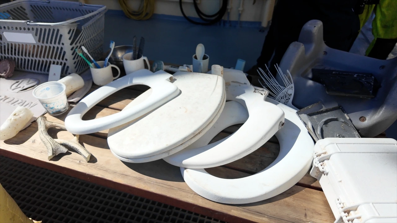주된 쓰레기는 바다 조업 중 버려진 어망부터 시작하여 각종 플라스틱 제품들.