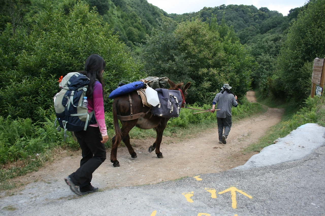 당나귀는 아저씨 짐까지 가득 짊어지고 길을 오르고 있었다.