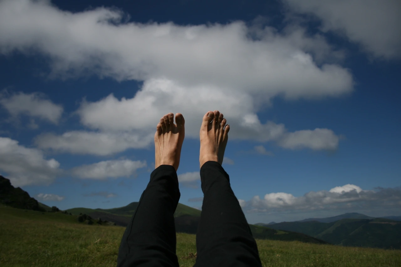 잠시 풀밭에 누어 신발을 벗고 양말도 벗어본다.