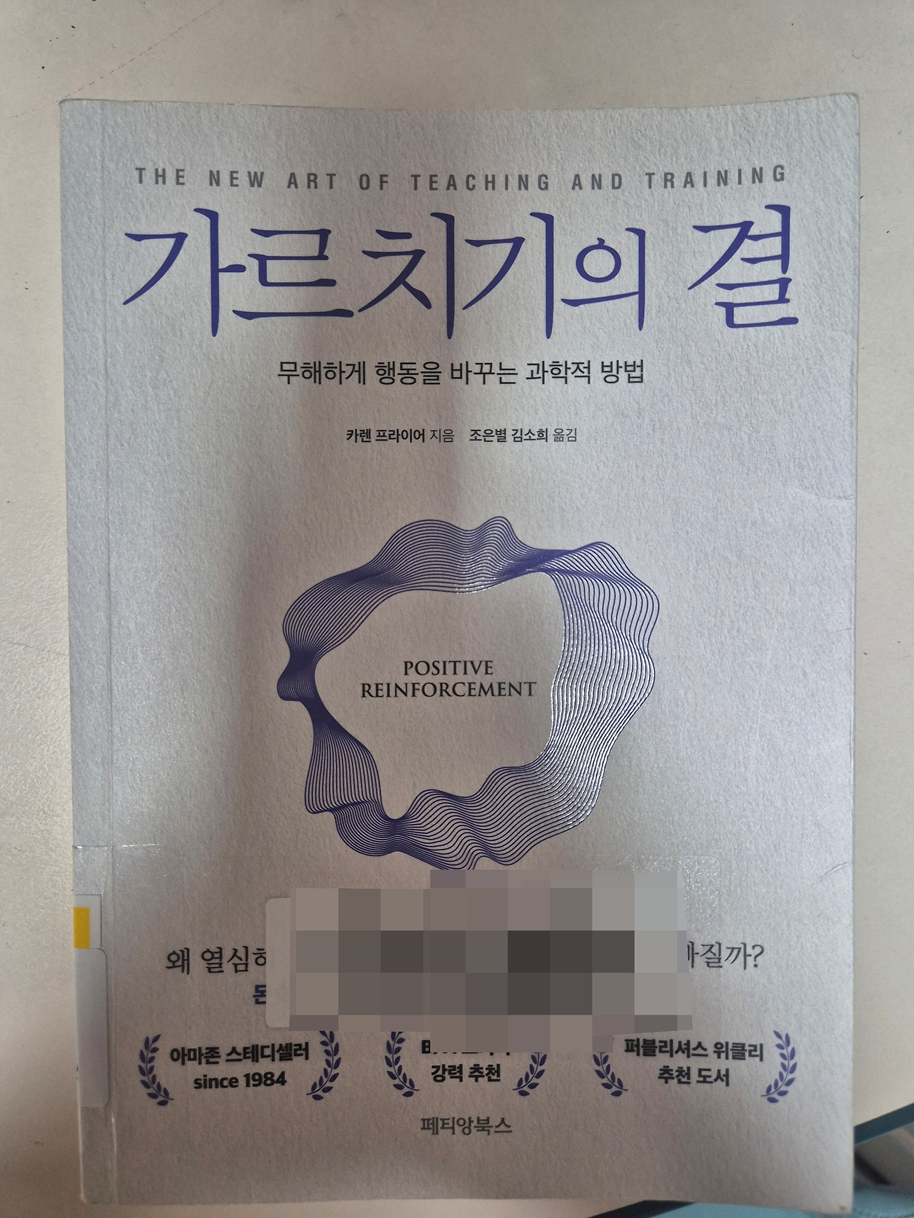 오늘 소개할 '가르치기의 결'의 저자인 카렌 프라이어는 1960년대에 하와이 해양생물 공원에서 돌고래 수석 트레이너로 일을 하다 강화 교육 원리를 공부하고 돌고래 교육에 적용하여 매우 효과적인 성과를 냈다. 그 후 이 원리를 다른 동물과 사람에게까지 적용하며 강압적이지 않으면서도 효과적인 교육법을 전 세계적으로 알리고 있다. 이 책은 1984년부터 아마존 스테디셀러인 '돈 슛 더 도그'의 한국어 번역판이다.