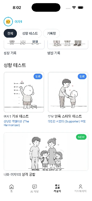 많은 분들이 기다려주셨던 '부모-아이 성격 궁합 테스트' 기능이 새롭게 업데이트되었습니다!