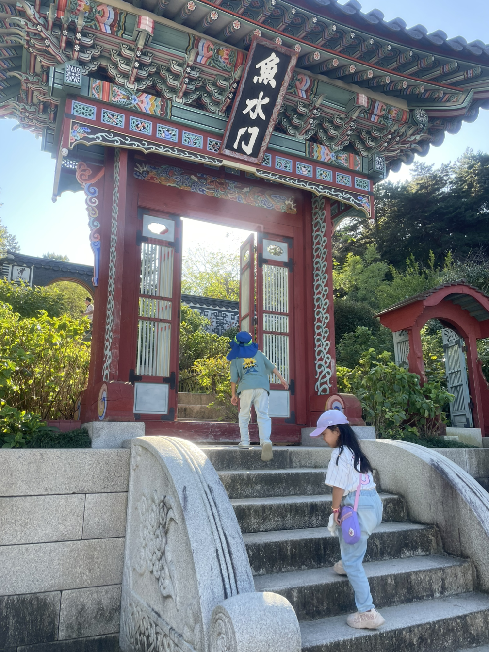 많이 걸어서 가장 안쪽에 있던 한국 정원 역시 이번에 새로 생긴 곳이었다. 한국 정원은 예전에 가본 담양의 소쇄원 하고 분위기가 비슷했다. 우선 보이는 곳은 창덕궁의 아름다운 부용정과 부용지를 모티브로 한 정원이었는데 작지만 부용정 위에 있는 어수문도 비슷하게 만들어 두어 보는 재미가 있었다. 계단을 오르면 둥그런 달처럼 보이는 대문이 나오고 그 안에는 옛 선비가 걸었음직한 고요하고 고즈넉한 누각이 나와서 쉴 수 있었다.