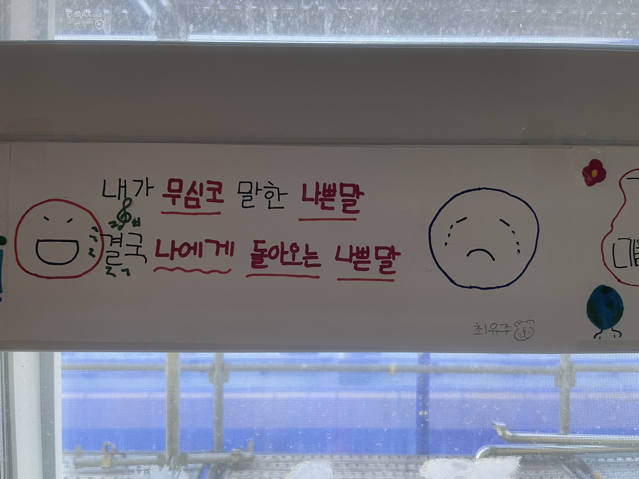내 목소리가 가식적이고 과하게 친절하다는 것이다. 내가 하는 말투나 행동을 따라 하면서 놀리지만 나는 별로 상관없었다. 교사가 친절하게 말하는 것이 잘못이라고 생각하지 않았고 오히려 그래야 한다고 나도 모르게 생각하고 있었나 보다. 수업할 때 내 목소리는 평상시 가족들과 이야기할 때보다 5음 정도 올라간다. 말할 때 "솔"음으로 말하라고 했던 어떤 교감선생님의 말을 기억하고 그것을 십여 년째 충실히 실천하고 있다. 그래서 평소 말투대로 말하면 아이들은 내가 뭔가 화가 났다고 생각하고 태도를 바르게 한다.