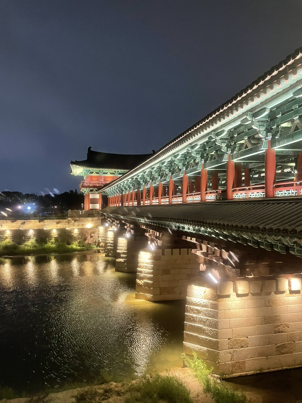 4월의 마지막날. 바람이 세차게 불었다. 이슬비처럼 비가 내렸는데 바람과 비가 섞여 분무기를 뿌리는 것 같았지만 월정교 야경은 좋았다. 다른 여행객들도 우리처럼 비를 맞으면서도 각기 다양한 포즈를 취하며 각자 추억을 만들고 있었다. 비를 맞고, 바람이 차가워도 옆에 있는 사람들과 그 시간을 나누고, 같은 것을 보고 들을 때 생기는 감정까지 모두 여행 인가 싶다. 아무튼 두 번째 날이 더 기대되는 경주의 밤이 빠르게 지나가고 있었다.