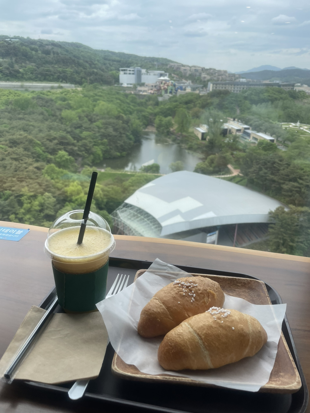 뭐니 뭐니 해도 엑스포 공원의 백미는 경주 타워였다. 82미터의 타워를 엘리베이터를 타면 10초 만에 꼭대기층에 도착하는데 나 같은 쫄보는 바깥 볼 때마다 심장이 철렁 내려앉는 기분이라 무서웠다. 아들은 더 심했다. 엘리베이터 앞에서 안 타겠다고 버티는 아이를 어떻게 꼬셔서 탔는데 이 녀석 때문에 타워를 두어 번 더 탔다. 경주 타워에서 본 경치는 당연히 좋았지만 더 좋았던 것은 솔거미술관 너머까지 보이는 풍경이었다. 당연히 다음 목적지는 솔거미술관이었다.