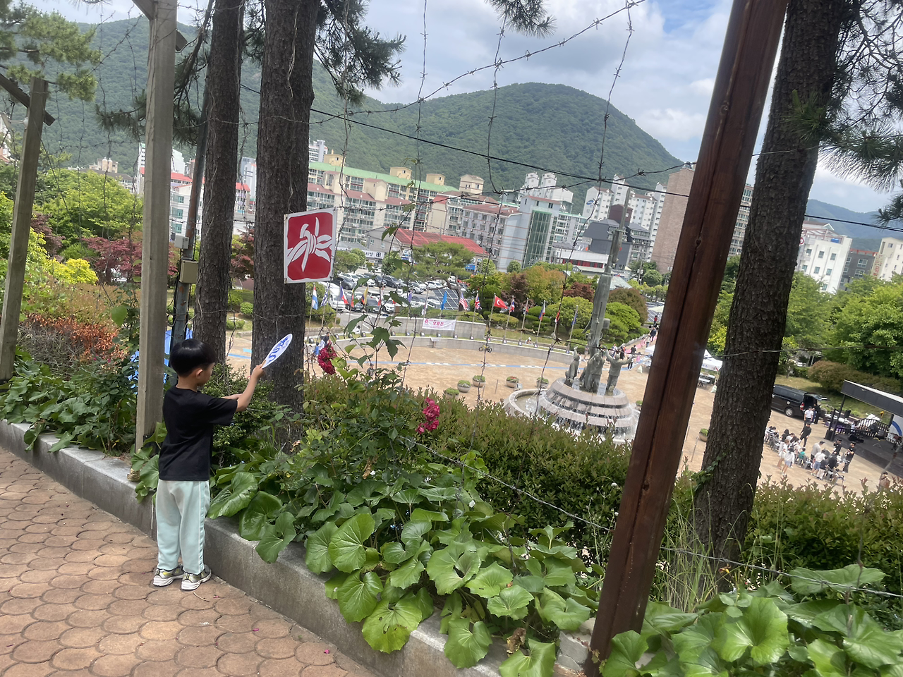 우리가 간 곳은 거제 포로수용소다. 거제는 한국 전쟁 당시 인민군, 중공군 등 전쟁포로를 수용했던 큰 감옥이었다. 섬이라는 지리적 이점을 극적으로 활용하여 17만 명이라는 어마어마한 포로들을 가두어 둔 곳말이다. 그 사실까지 모두 잊은 듯 초록의 나무와 후덥지근한 공기가 포로수용소 분수 광장 전체를 메웠다.