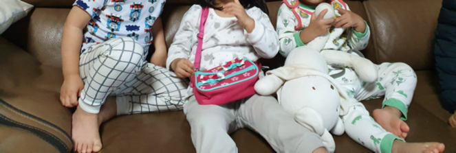 제 몸보다 더 큰 베개를 어딜 가든 들고 다녔다. 어린이집 가는 차 안까지 베개를 들고 갔고, 기어이 어린이집 안에 들고 간 적도 몇 번이다. 위생상 차 안까지는 허용했으나 길거리에 들고 다니는 것은 용납하지 않자 떼를 부린 날도 많았다.