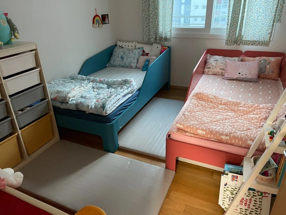 좀 커서 누나랑 같이 쓰는 방에 침대를 들여 넣었고,
