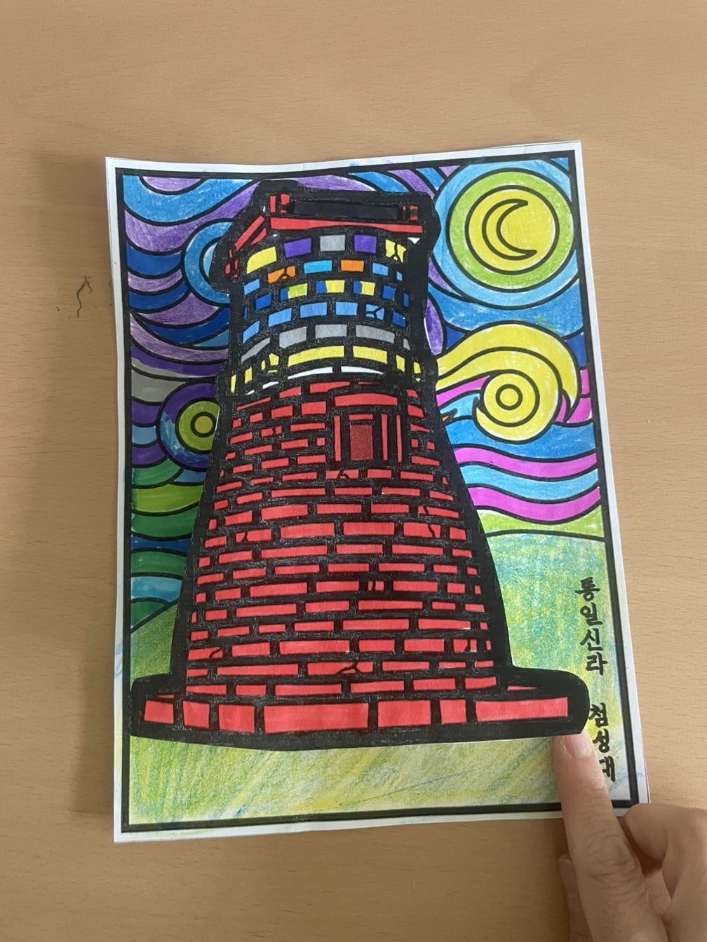 첨성대에 대해 배우고 첨성대를 간단하게 색칠하는 수업이었다..