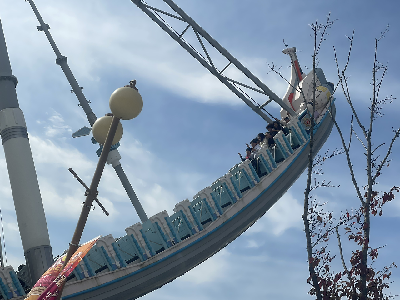 순식간에 우리 차례가 되어 바이킹에 올랐는데 피터랑 다행히 마음이 통해 가운데 줄에 앉았다.