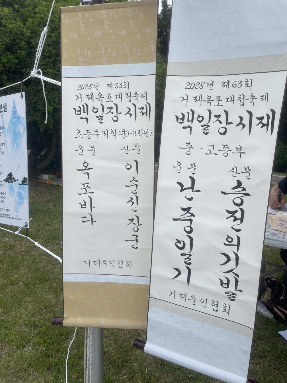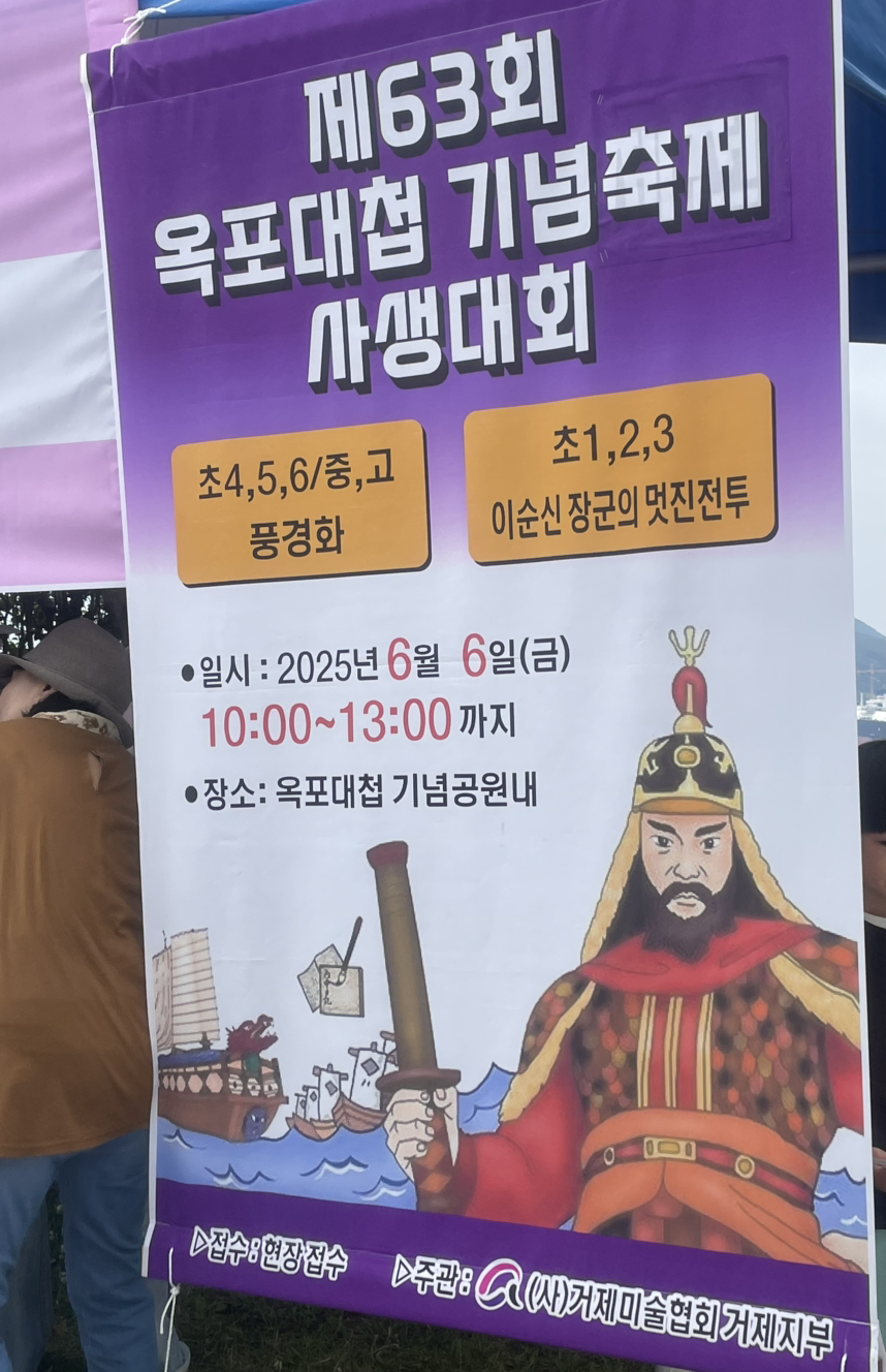 현충일 오전, 꿀처럼 달콤한 휴일에 많은 아이들이 그들을 응원하는 가족들과 함께 그림을 그리고, 글을 쓰러 옥포대첩기념공원에 모였다. 수준이나 연령을 뛰어넘어 이곳에 모인 아이들은 최소한 자신이 쓰고 그린장면은 평생 가슴에 남길 것이다.