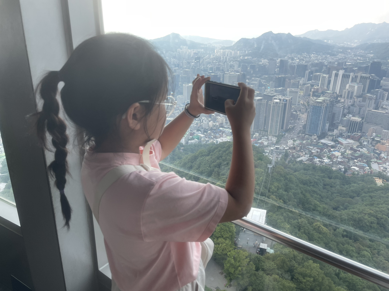 조금 쉰 후 다시 입장권을 끊고, 남산 타워 전망대에 올라갔다. 이미 많은 사람들이 편안한 자리에 앉아 서울의 풍경을 감상하고 있었고, 우리도 그 틈에 끼어 쉬었다.
