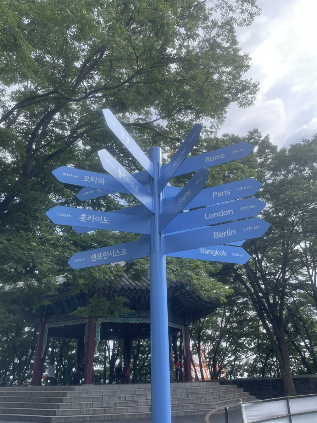 케이블카는 금세 승강장에 도착했고, 발아래 익숙한 나무 계단과 초록의 나무들을 머리에 이고 천천히 오르니 남산 팔각정이었다. 아들은 누나에게 빌린 카메라로 계속 셔터를 누르고, 딸은 자기 마음에 드는 포즈와 장소를 고심해서 결정한 후 사진을 찍어달라고 한다. 아빠는 더운지 그늘로 들어갔으며 나는 전망대에서 그래도 알만한 장소를 열심히 찾았다. 큰 건물 사이로 보이는 궁궐, 청와대, 이름은 익숙한 호텔 등 조금이라도 아는 것이 나오면 아이들에게 말해주느라 바빴지만 아이들은 그보다 색색의 기념품에 더 혹했다.