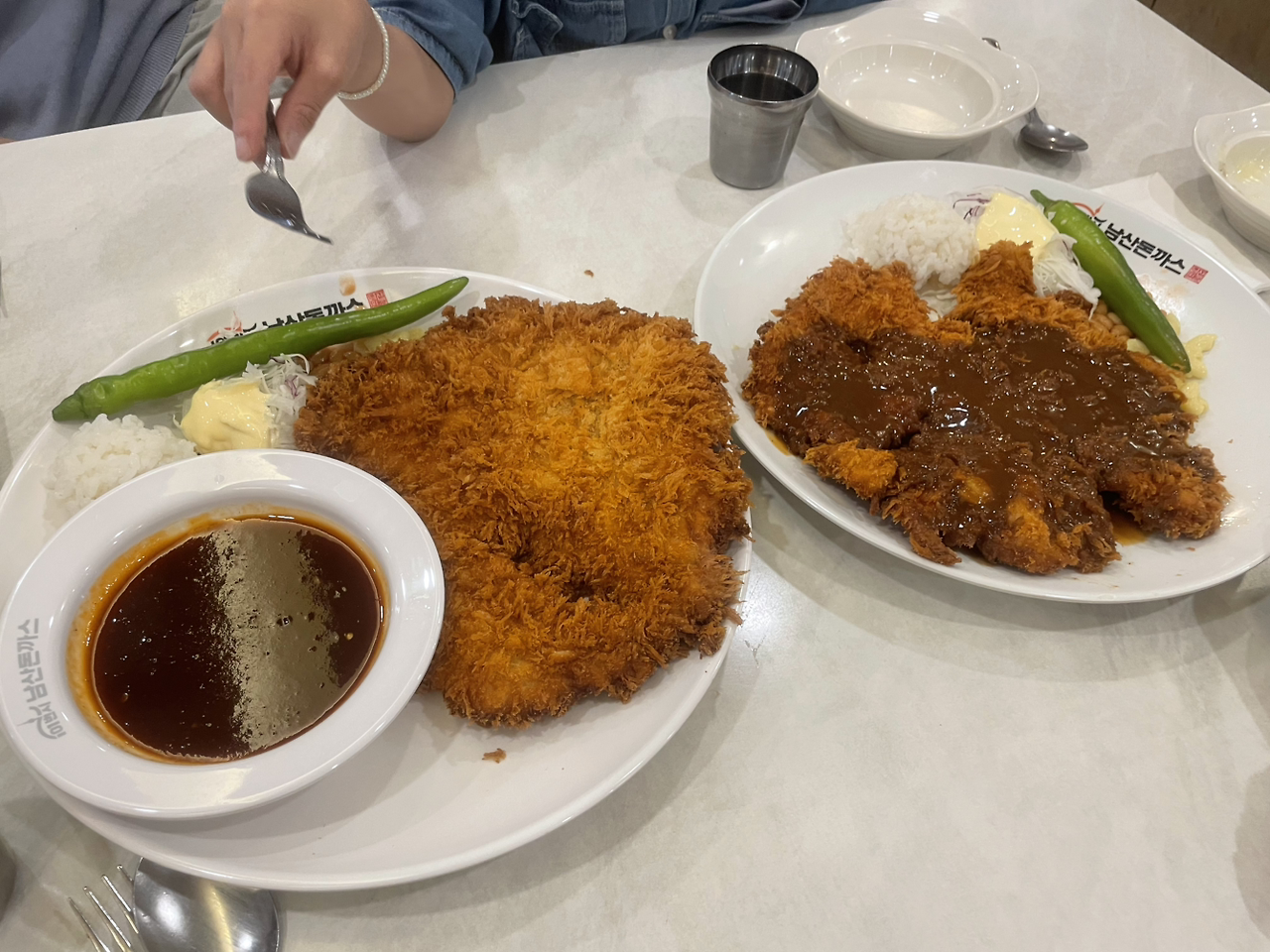 분명 날씨예보로는 8월 첫 주 폭우가 예상된다고 했는데, 여행 내내 하루 빼고 모두 태양이 작열하는 여름 그 자체였다. 4명이라 지하철 요금보다 택시 비용이 더 비싸지도 않았다. 남산 타워에 오르기 전 모두들 간다는 101번지 남산돈가스에서 점심을 먹었다. 맛집을 찾아다니지 않는 성격이라 밥은 그때그때 보이는데서, 먹고 싶은 것을 먹었는데 4일간의 여행 일정 중 제일 유명한 맛집을 갔지만 맛은 누구나 아는 돈가스 맛이었다.