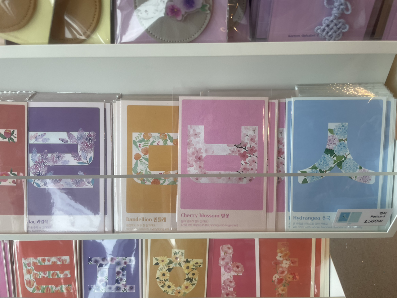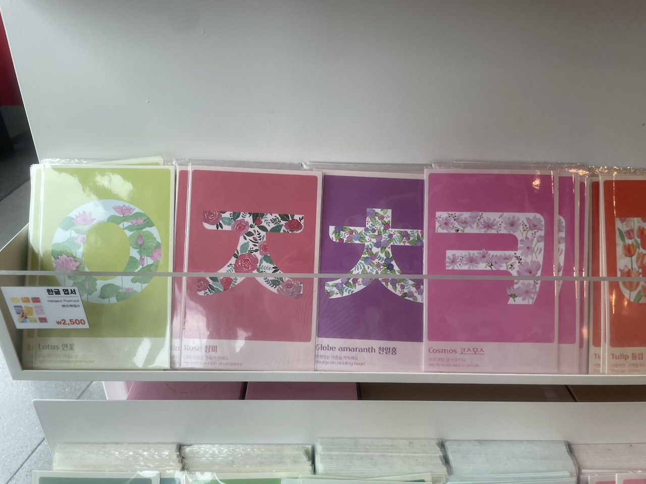 전망대에서 눈에 띄었던 것은 전망대 유리창에 제일 많이 보였던 한글 디자인이었다. 기념품 가게에도, 한글을 디자인한 키링, 엽서, 스티커 등이 제일 많았다. 1학년 아이들 한글 가르칠 때 활용하면 좋을 것 같은 디자인이 많아서 사진을 찍었는데, 아이들은 한글보다는 남산 타워 스노볼, 마그넷, 핸드폰 스마트톡 이런 것들이 더 눈이 갔는지 계속 아이쇼핑을 멈추지 않았다.
