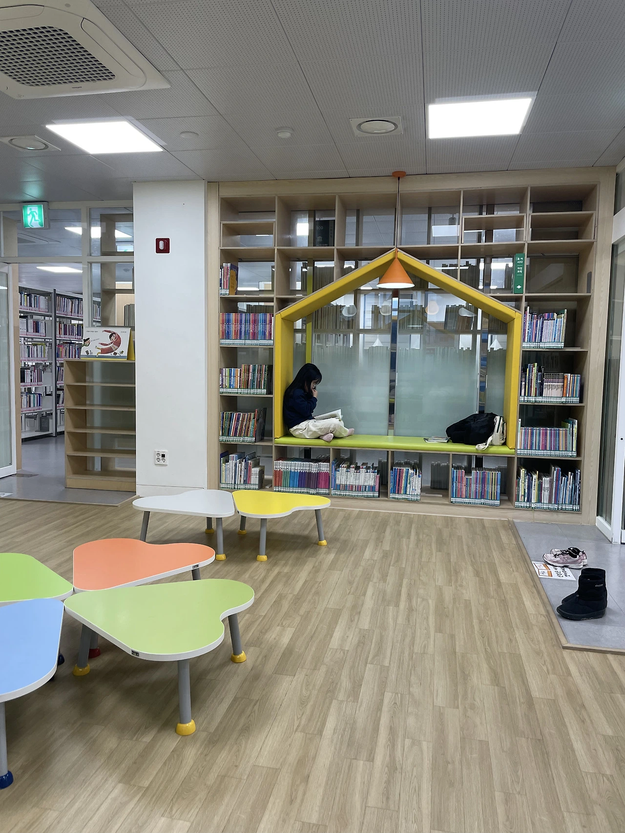 책 반납할 때가 되면 같이 도서관에 가서 각자 멀리 떨어져서 보고 싶은 책을 구경하고 집어 들어 읽는다.