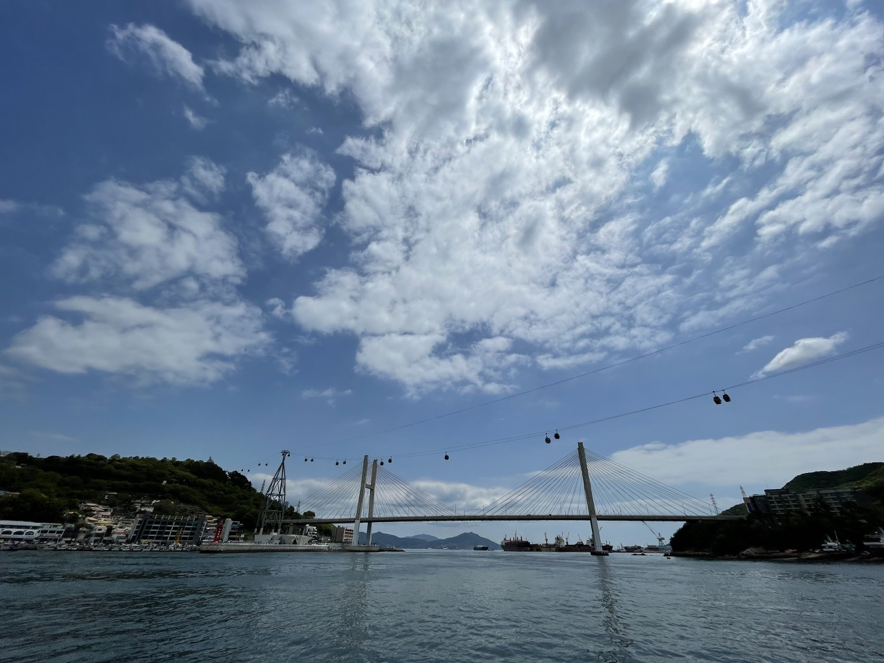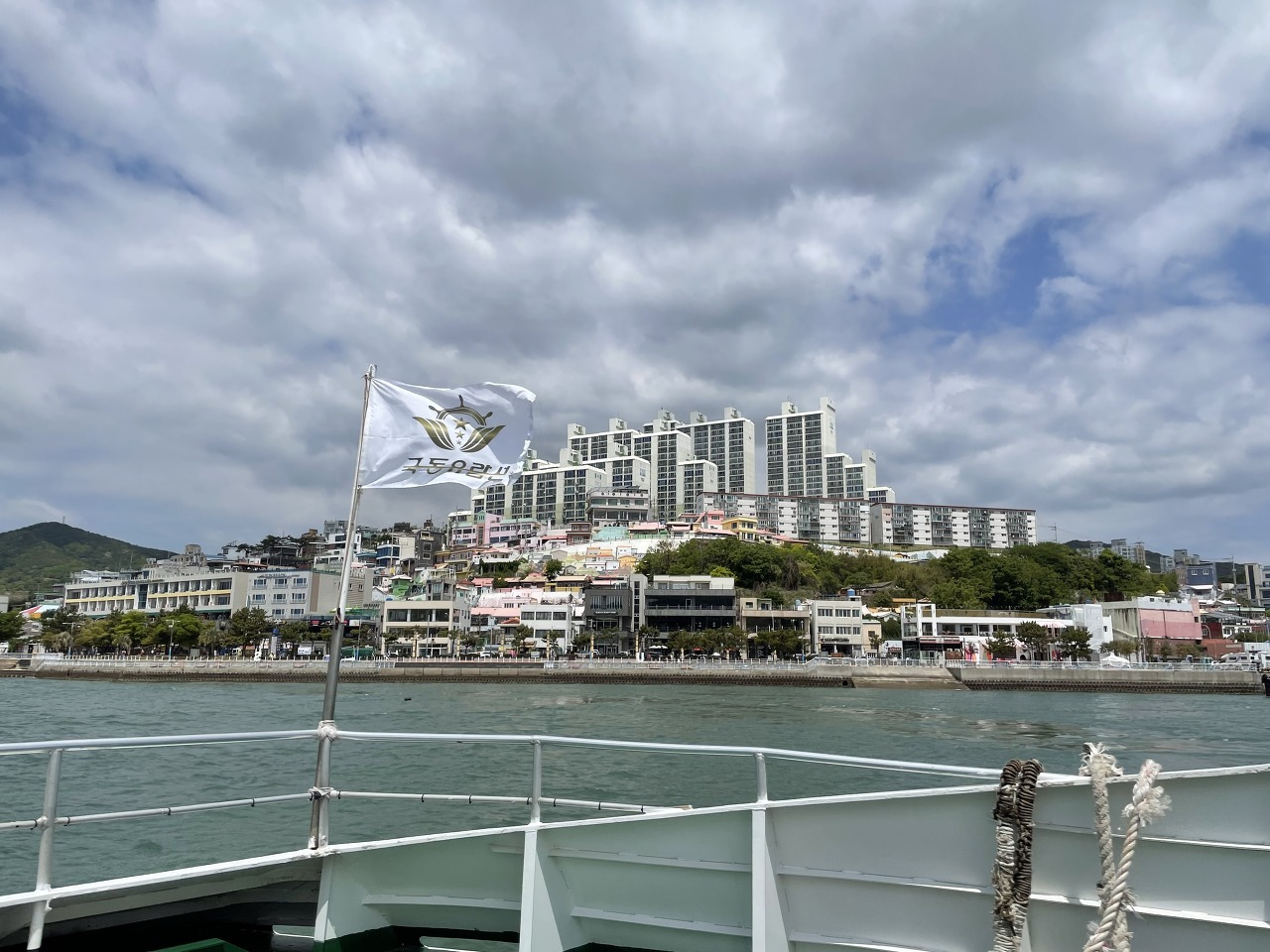 유람선 안에는 사람들이 별로 없었다. 자리를 잡고 앉아 유람선 밖 풍경을 보니 거북선 대교와 멀리 돌산대교, 그 위를 날아다니는 케이블카, 빨간 하멜등대, 유람선 안내 방송을 계속 관광지를 설명했다. 우리 눈은 그것들을 찾는라 바빴고 유람선 갑판으로 올라가서 더 시원하게 관람할 수 있었다. 바닷가 동네에 살면서, 배를 만드는 회사에 다니고 있으면서도 배를 타는 것은 신기했다.
