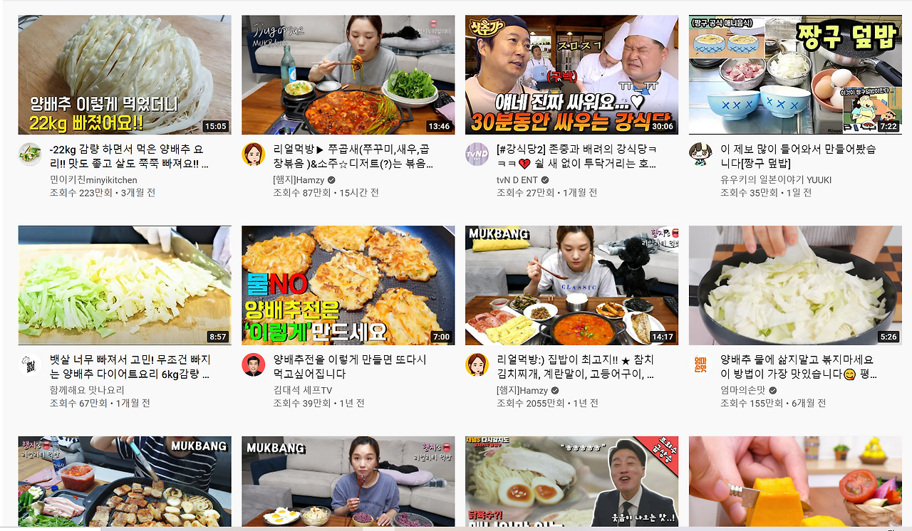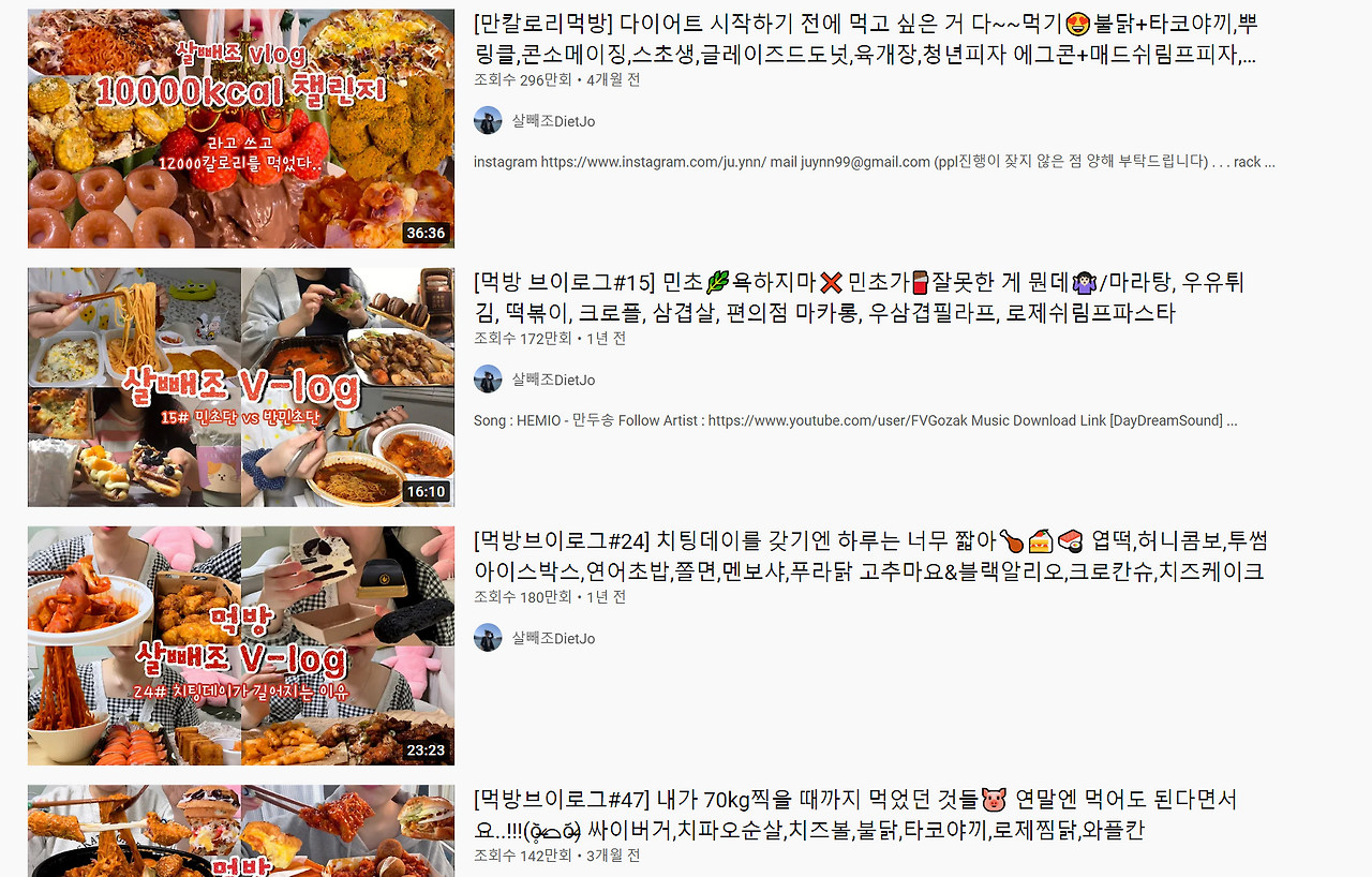 유튜브 메인 화면에 알고리즘에 먹방이 두세 개 뜬다. 그것만 보면 좋은데 또 다른 영상 영상을 계속 누르게 된다.