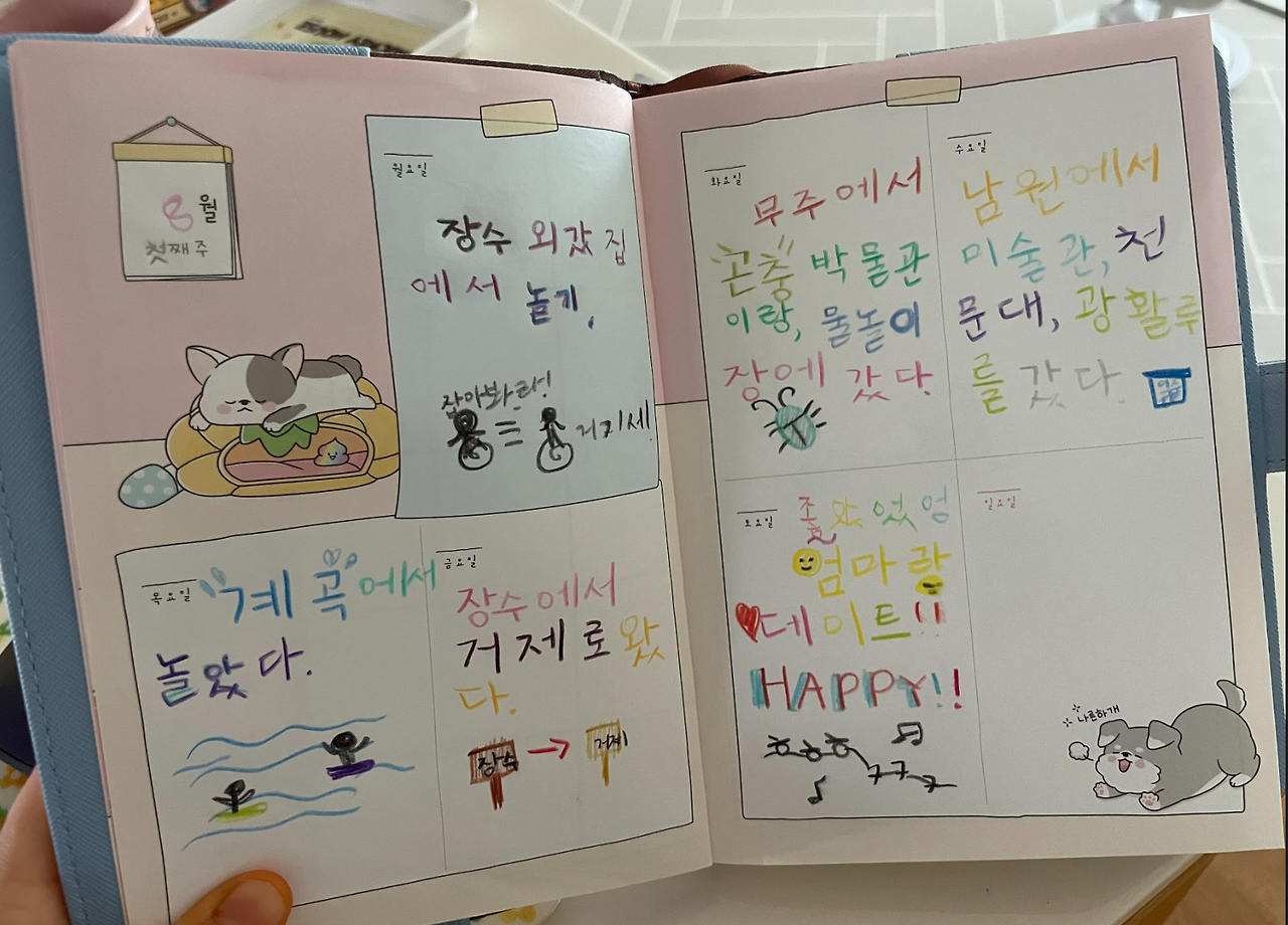 큰 소리가 나지 않았다. 우는 소리도, 싸우는 소리도, 엄마 아빠 잔소리도, 우당탕탕 뛰는 소리도 하나도 들리지 않았다. 그림도 그리고, 다이어리도 꾸미는 딸이 달그락달그락 색연필 꺼내는 소리, 색칠하는 소리만 쓱싹쓱싹 조용히 들렸다.