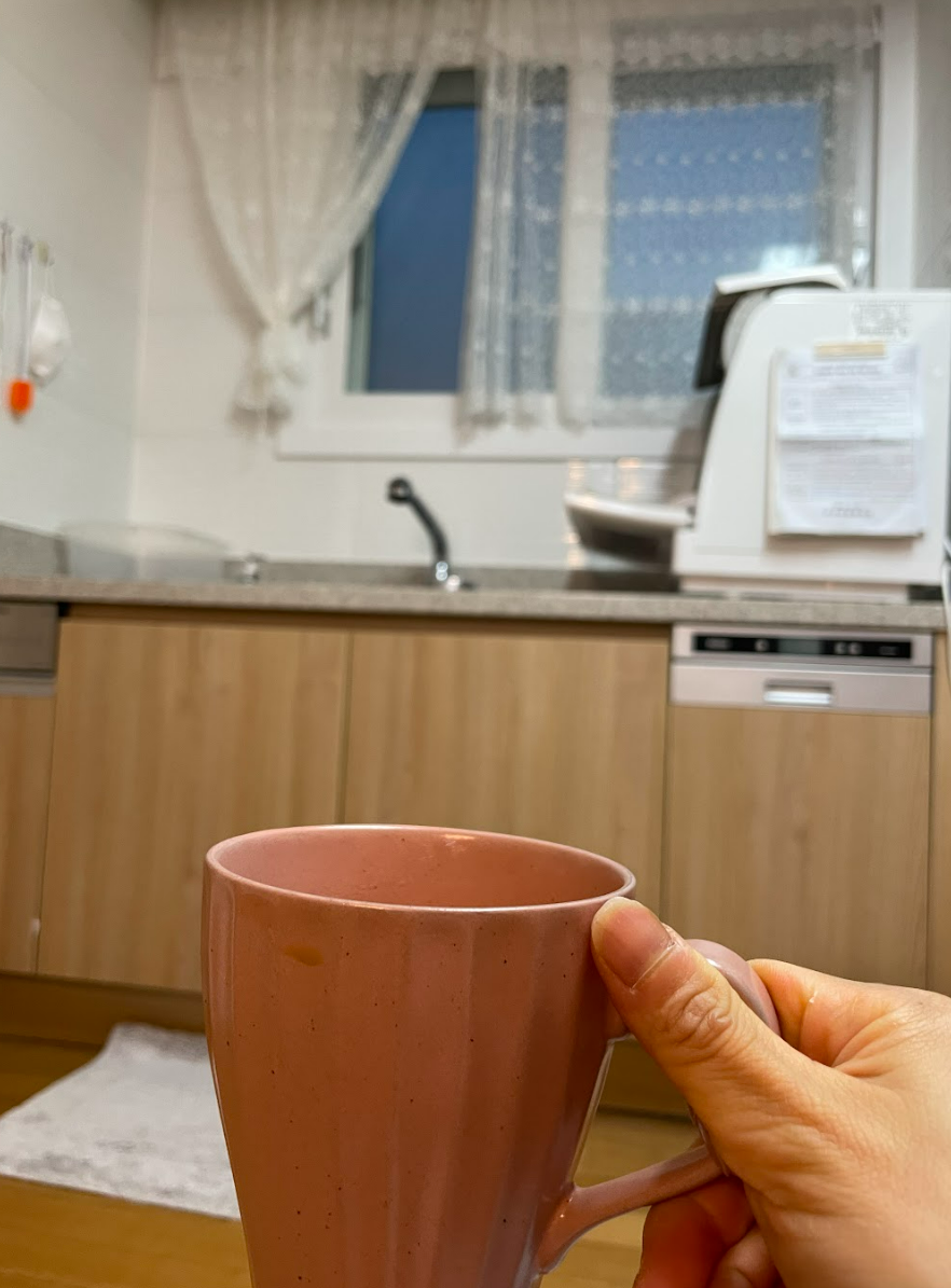 예전엔 종이컵에 마셨는데 요즘은 컵에 타서 마신다. 손이 따뜻해져서 좋다.