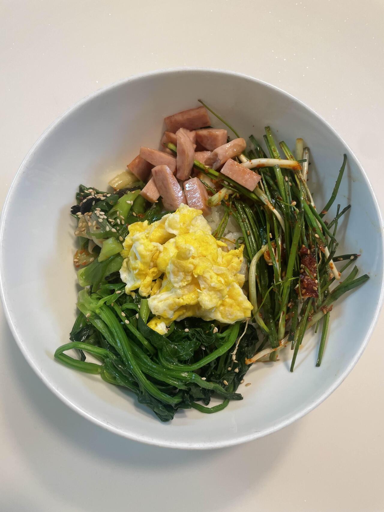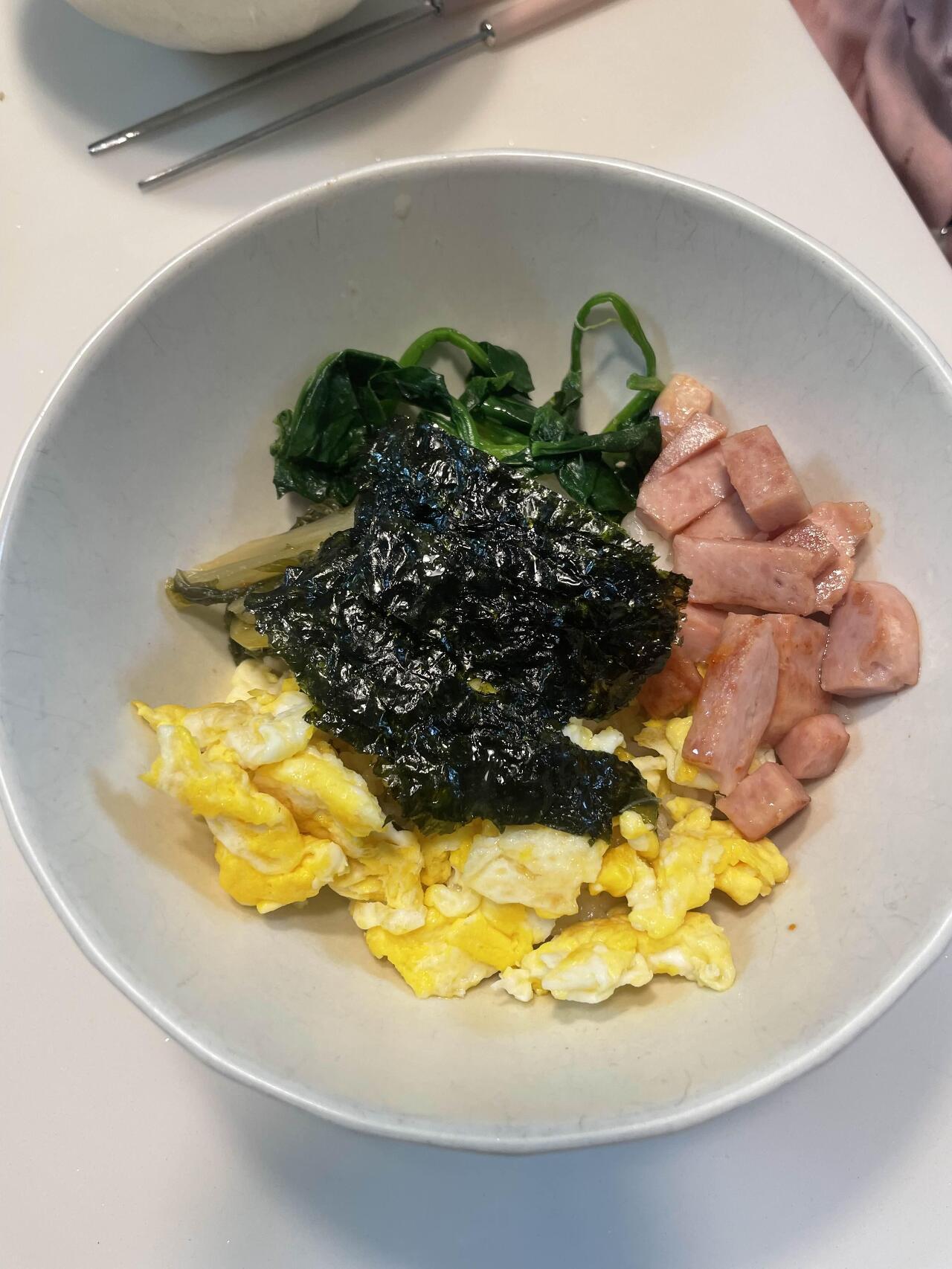 애들 입맛엔 조금 어려울 것 같기도 해서 햄도 잘게 잘라서 볶고 계란도 부쳤다.