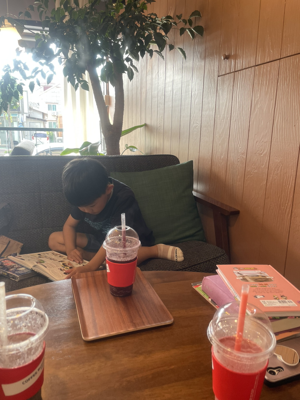 각자 음료 하나씩 시켜서 책 보다 보면 1시간은 훌쩍 지난다. 그 자리 그대로 카페가 몇 년째인데 사장님은 작년에 바뀌었다. 음료 가격도 저렴하고 아이들이랑 같이 온다고 사장님이 사탕, 젤리도 가끔 챙겨 주셔서 아이들은 꾸벅 인사도 잘한다. 갈 때마다 그 너른 카페에 우리들밖에 없어서 또 사장님이 바뀌는 것은 아닌지, 카페가 없어지는 것은 아닌지 걱정이 조금 된다.