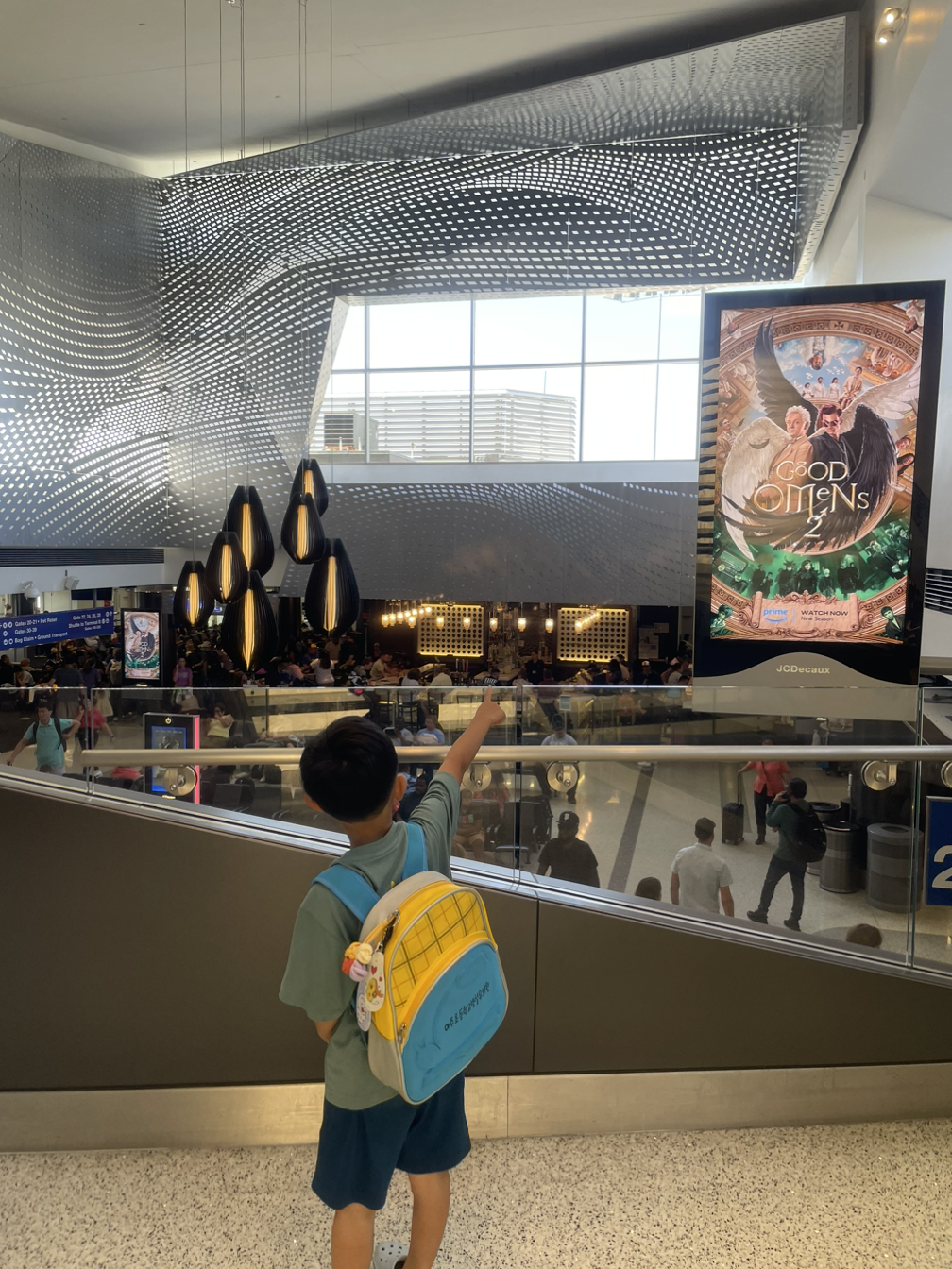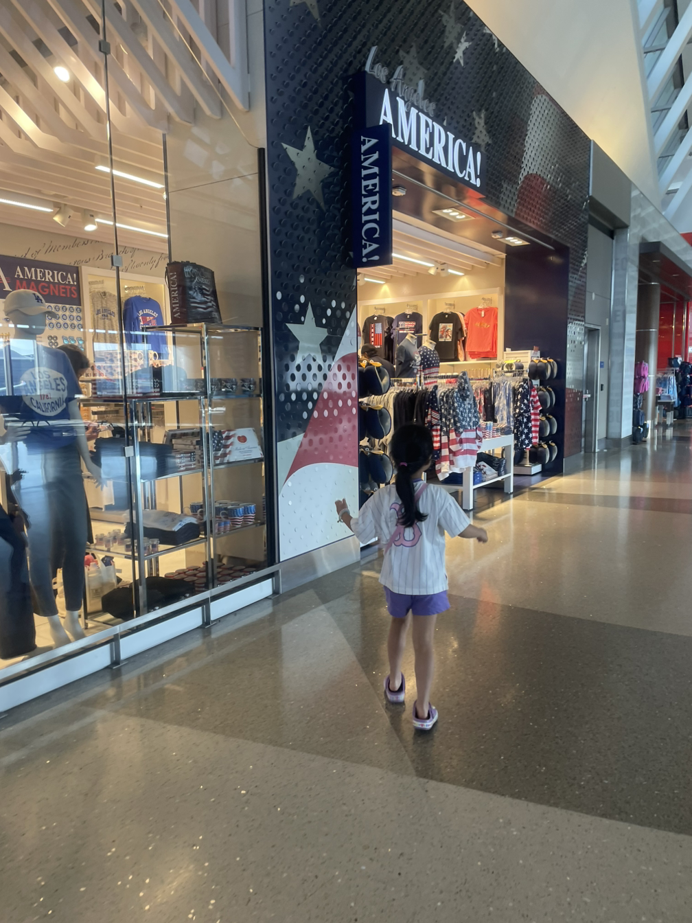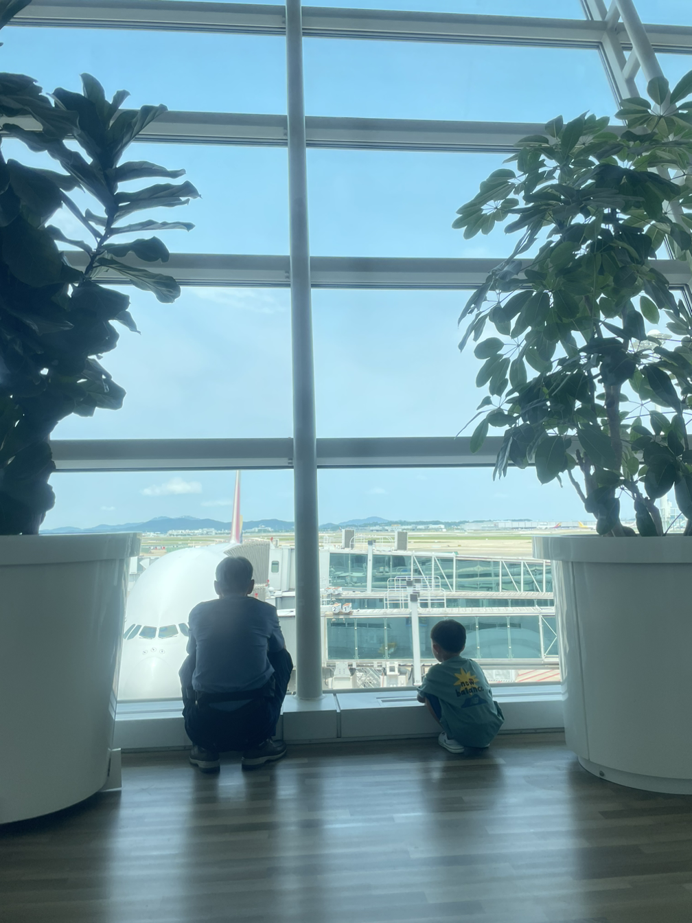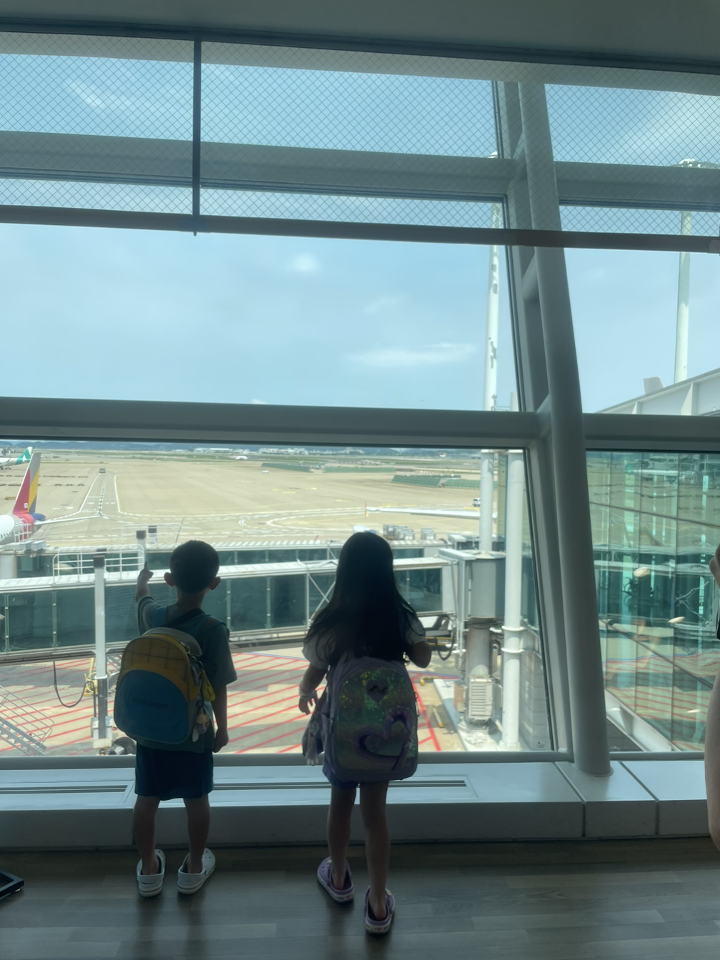 어슬렁 거리다가 게이트 번호가 뜰 때쯤 출국장에 들어갔다. 아버지 면세점 쇼핑도 따라가고 아이들 놀이 공간에서 놀다 보니 보딩 시간이라 줄을 섰다.