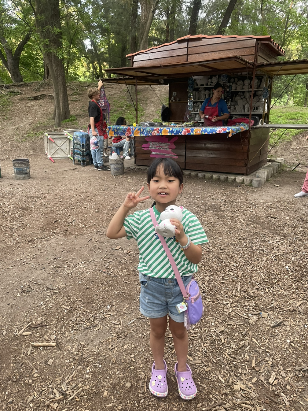 그네와 작은 호수에 떠 다니는 거위도 아이들의 흥미를 끌었지만 제일 마음에 들었던 것은 석고 인형 색칠을 할 수 있는 작은 가게였다.