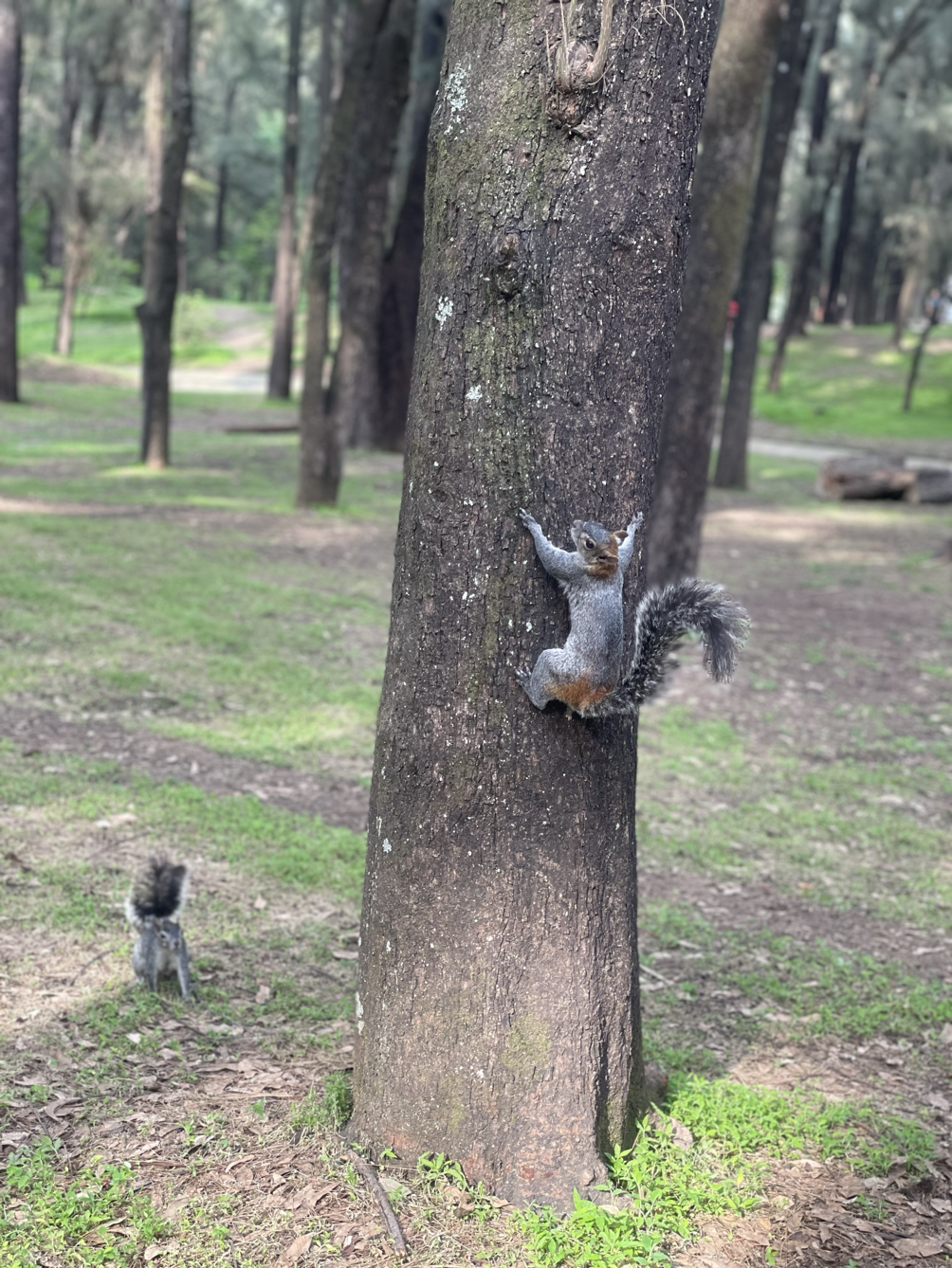 조용한 숲에 조용하지 않은 존재들이 몇 있었는데 그건 청설모들과 우리 아이들이었다.