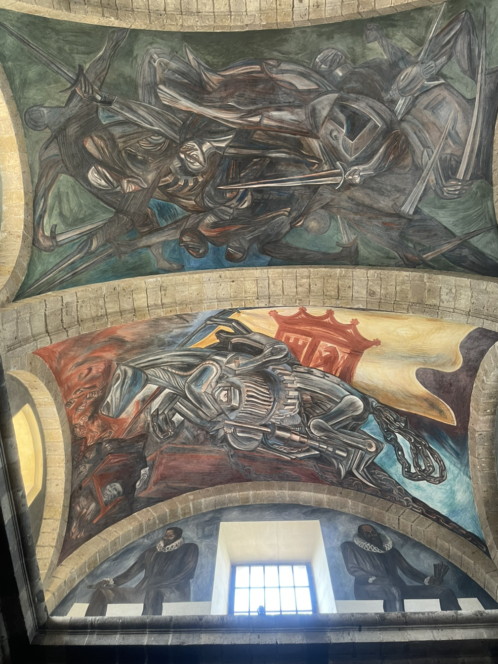 멕시코의 토속적인 색채와 독립 과정을 벽화로 그려서유명하다는 오로즈코라는 화가의 그림은 웅장하고 거칠었다.