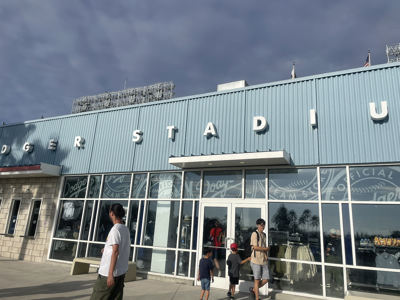 일단 사람들이 모두 투명 가방을 메었다. 그리고 파랗고 흰 다저스 티셔츠와 모자를 썼다. 거기까지는 그러려니 했는데 알고 보니 야구장에 들어갈 때 가방을 들고 갈 수 없다고 했다. 여행객인 우리는 당연히 이것저것 들어있는 백팩을 다 메고 조금 작은 크로스백도 두르고 있었는데 그런 가방은 투명하지 않기 때문에 반입이 금지됐다!