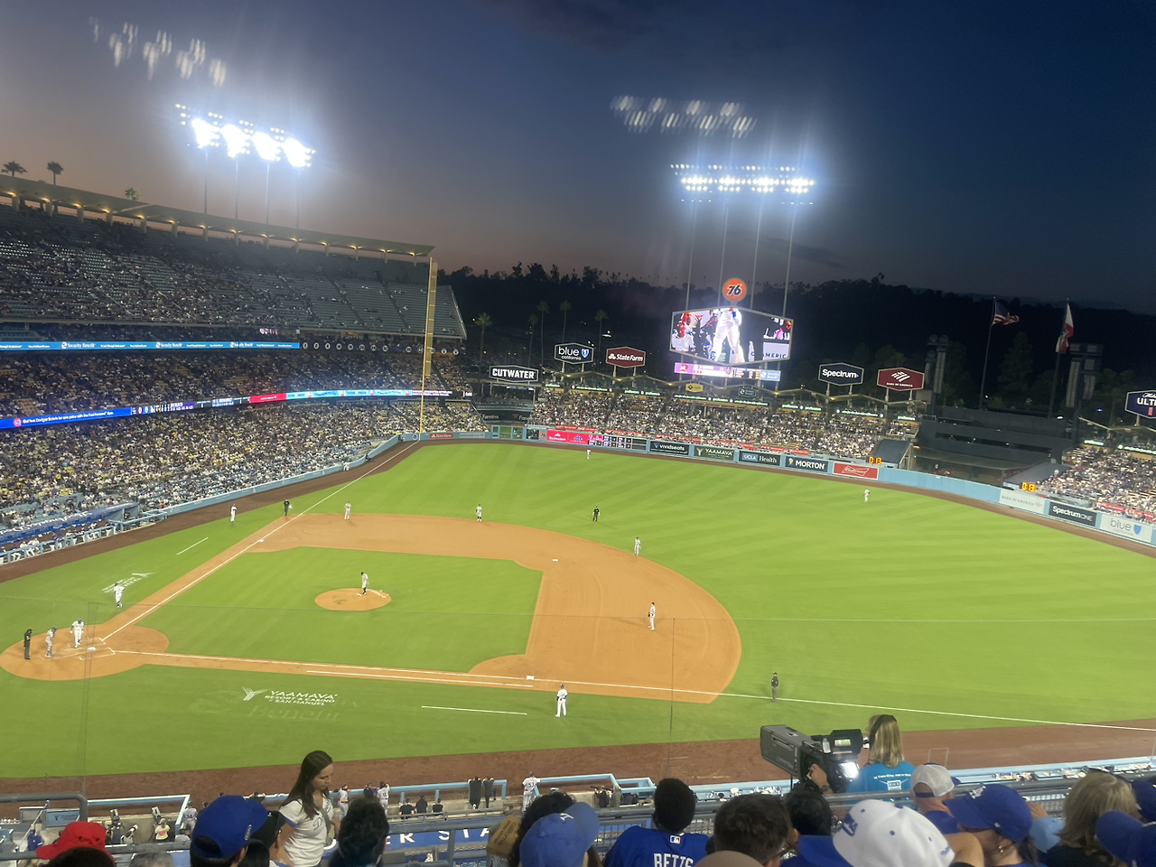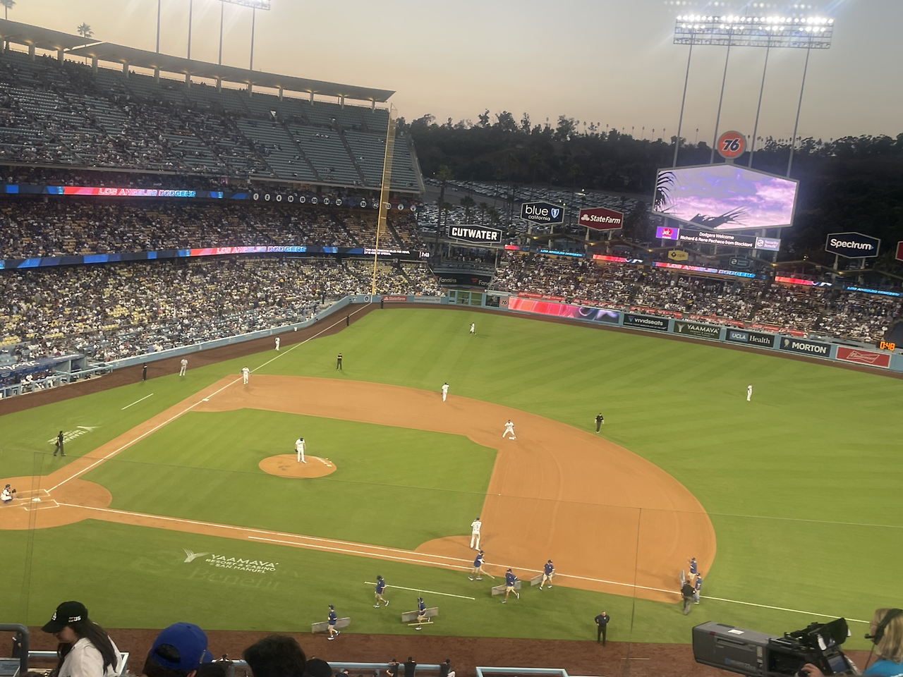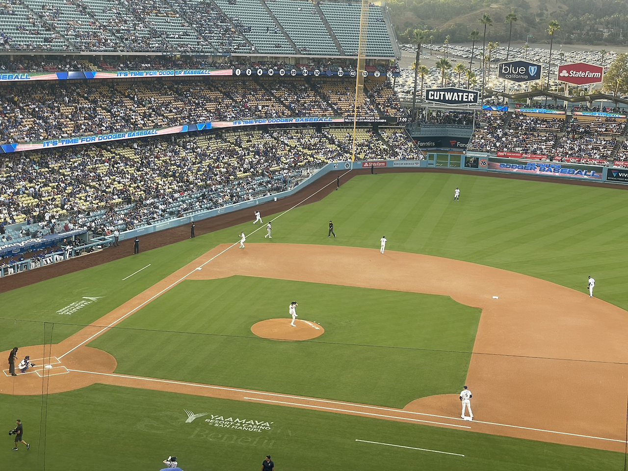 경기 시작 30분 전에 들어가서 빈 좌석이 많았는데 사람들이 계속 들어와서 그 많은 자리가 거의 찼다. 저녁 시간인데 사람들이 두 손 가득 먹을 것을 들고 와서 먹고 마시면서 야구를 즐겼다. 우리는 밥을 먹은 지 얼마 안 돼서 음료와 아버지 드실 맥주만 샀는데 물론 사이즈가 엄청 큰 콜라와 파워에이드였지만 물 두 개와 음료 두 개가 60불이 넘다니! 여기서 그냥 음료만 꺼내주는데도 팁을 10%부터 내야 했다.