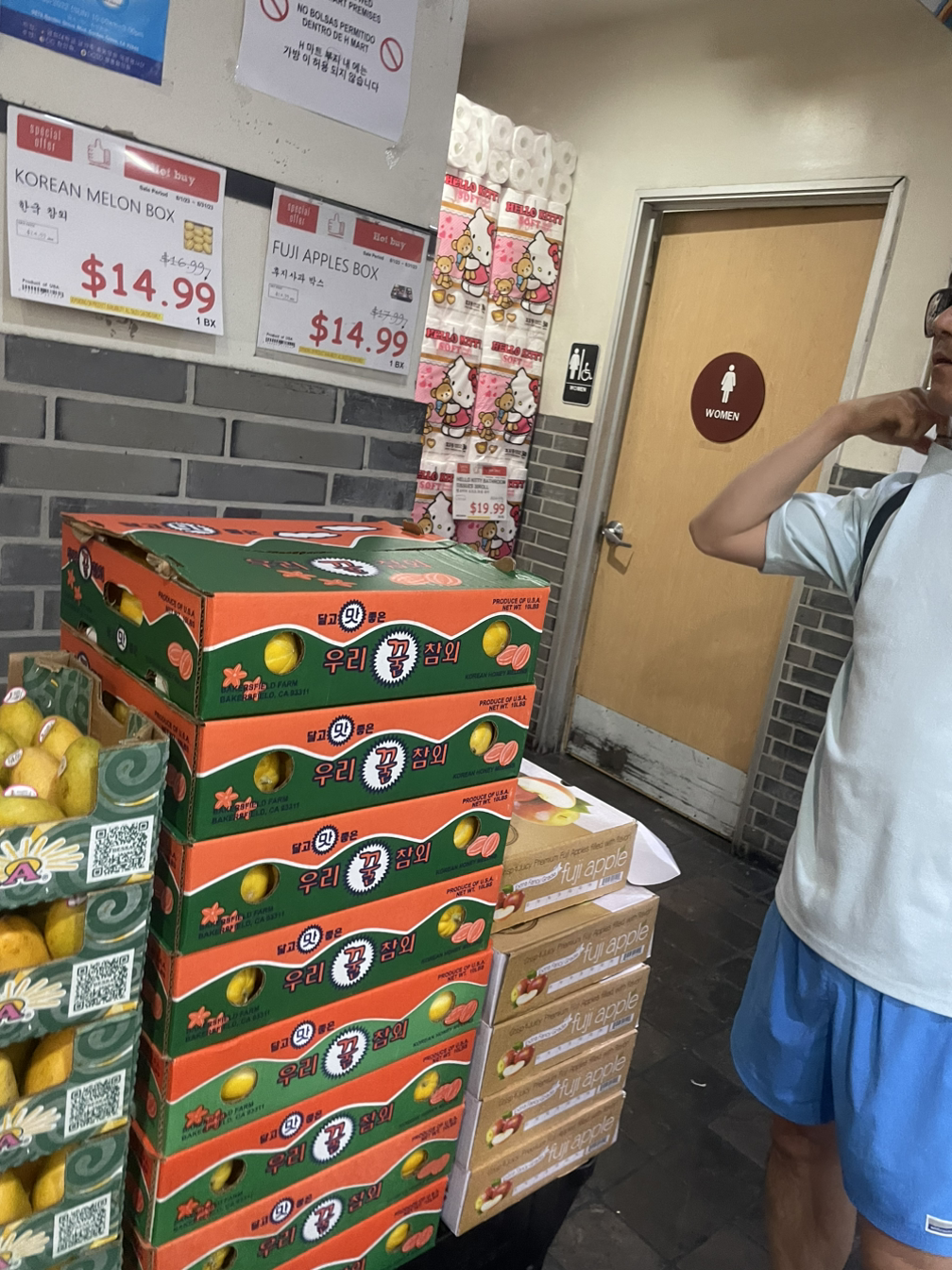 배가 두둑해서 한인타운을 구경했다. 한글간판 읽는 재미도 있고, 어떤 가게들이 있는지 구경하는 것도 흥미로웠다. H마트라는 한인마트에는 우리나라 참외, 사과, 각종 김치, 과자류, 음료 등 그냥 우리나라 마트였다. 멕시코에선 한인마트에서 라면, 과자가 비쌌는데 미국 한인마트는 합리적인 가격이었다. 그냥 나가기 아쉬워서 저녁에 먹을 컵라면과 과자 등을 사서 나왔는데 거기서 큰 실수가 있었다.